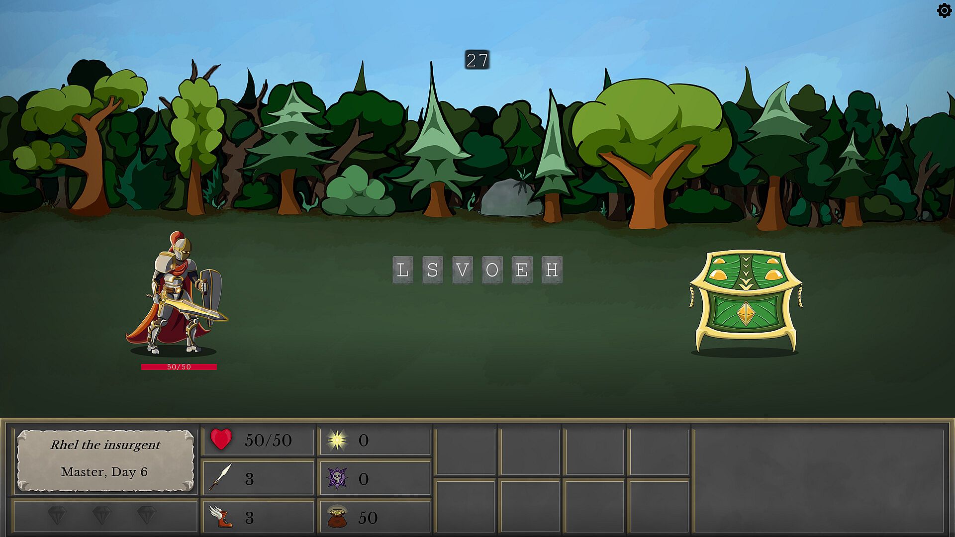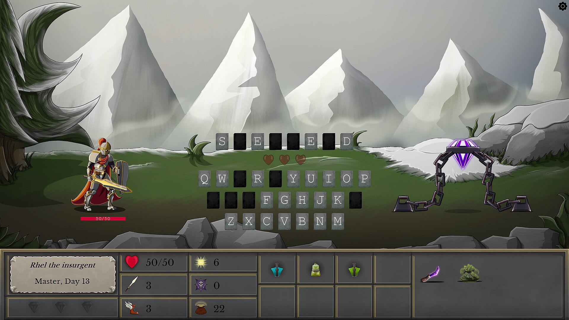 - Enemies each have their own unique health pool, strength, speed(affects clock time), intelligence(tendency to play long words), and special effects.