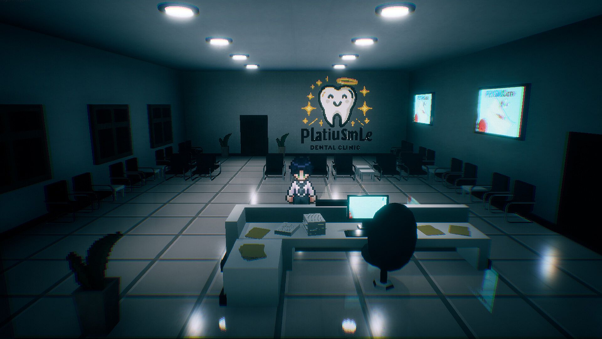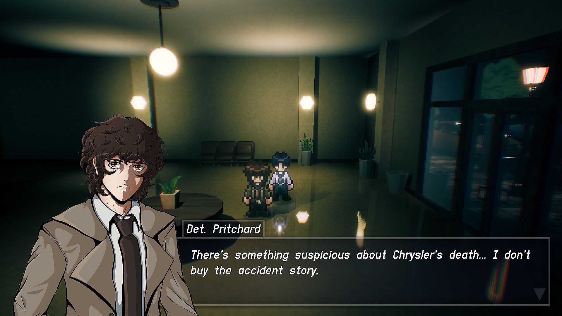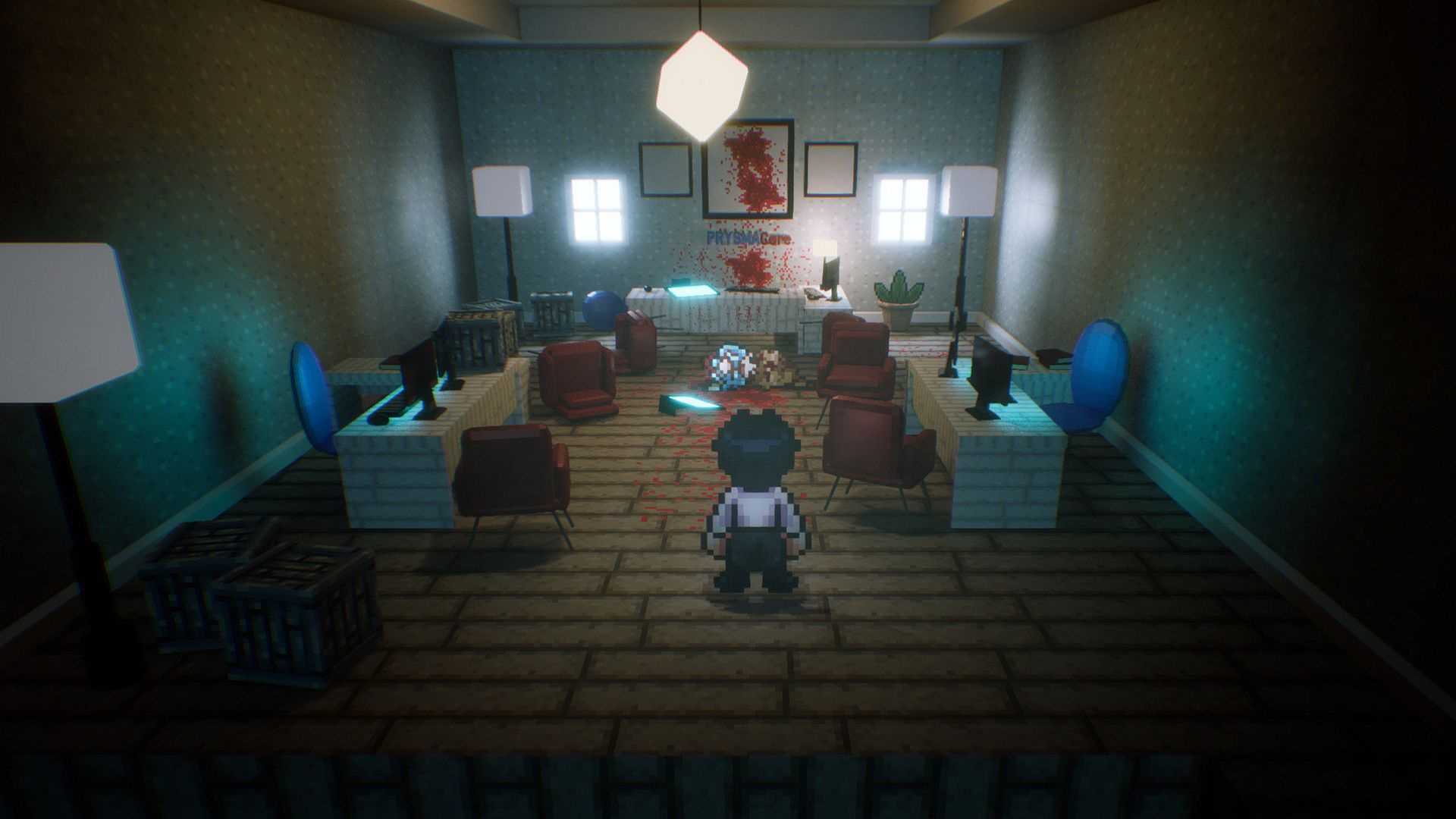 2D pixel art characters appear in richly lit, cinematic 3D environments that make ordinary office spaces feel both unnerving and visually pleasing. Visually, the game embraces a striking HD-2D presentation, with sprite-animated characters layered into tactile office environments, where copy machines, glass meeting rooms, and carpeted hallways transform into uncanny backdrops for a story that blends modern realism with unsettling nostalgia.