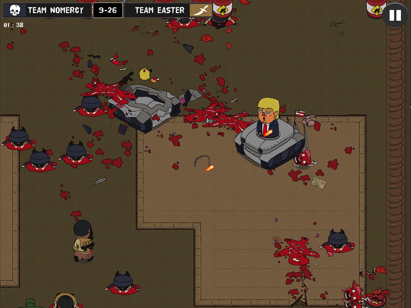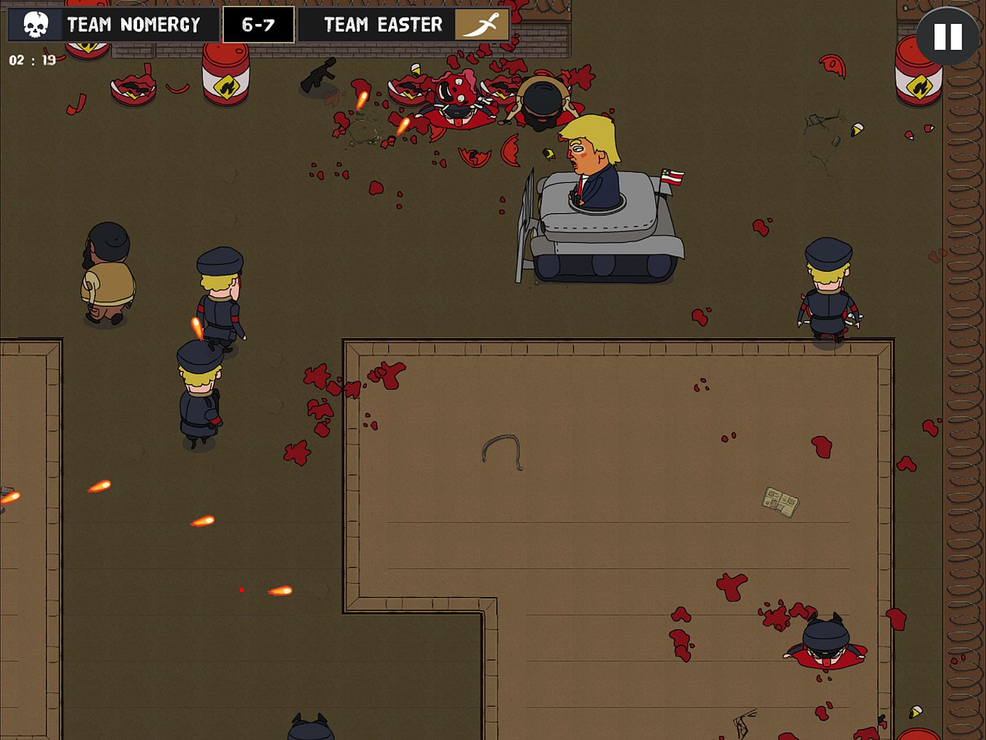 If your idiot butt forgot to pick up that ammo on the way, and your weapon jams up because you forgot to clean it, press the boost button and spear the propagandists right in the chest, and take, them, down. Tanks spawn too sometimes, only when Trump breaths heavily on your neck really hard, that hardcore killing machine takes down hundreds, even thousands of the foot soldiers and it is ghoulish! Don't fall into the trap and join any team they throw you in, choose which team you want to join first, because, free will, and play your friends over local Wi-Fi or the internet, it's literally a blast, okay.