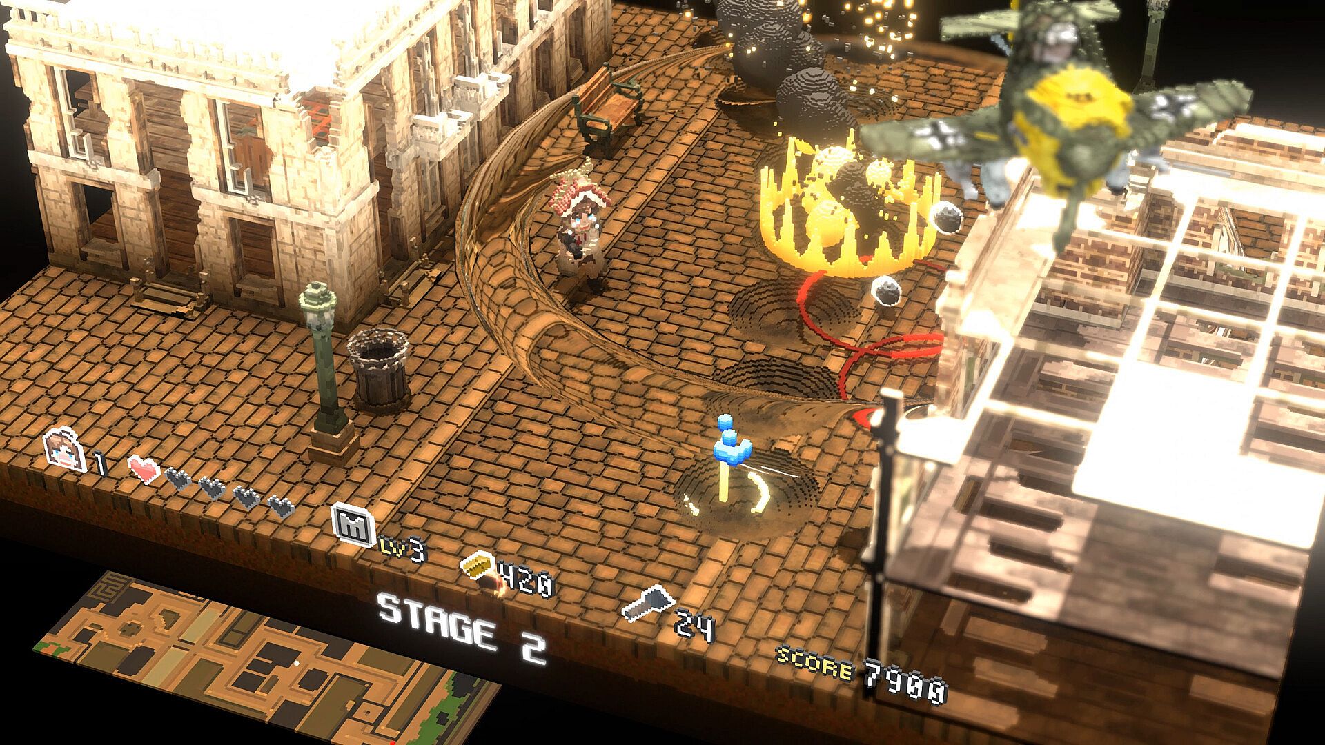 In a world shifting between voxel battlefields and retro pixel scenes, stop the ambition of the V Empire!