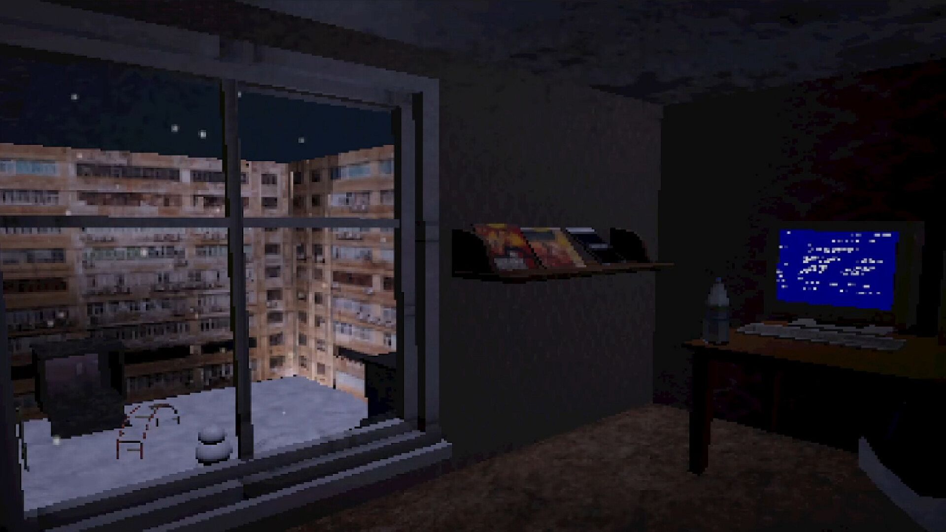 β’ PS1-style low-poly graphics and retro visual effects create the feeling of a lost game from the late 90s.