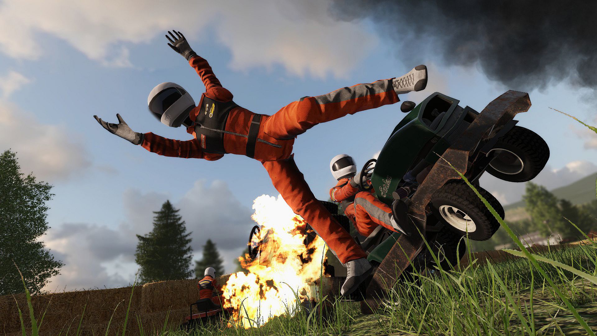 Have hilarious fun with lawn mowers and upon release also with crop harvesters, school buses, three-wheelers and more!