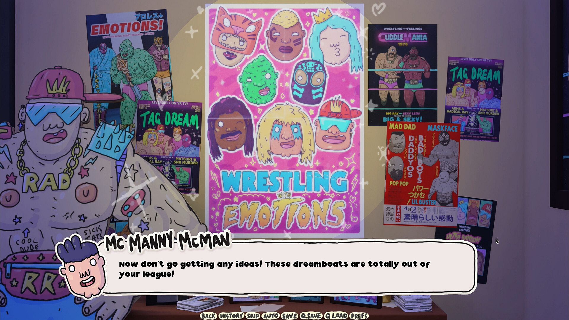 Do you want to be a muscle-bound himbo? Do you dream of being the most elegant warrior in the ring? Do you want to put the attitude back into wrestling? Maybe you just want to blow audiences away with your theatrics? In 'Wrestling With Emotions' you can do it all! There are no wrong choices in this story that celebrates individuality, and rewards every player with their own absurd adventure!