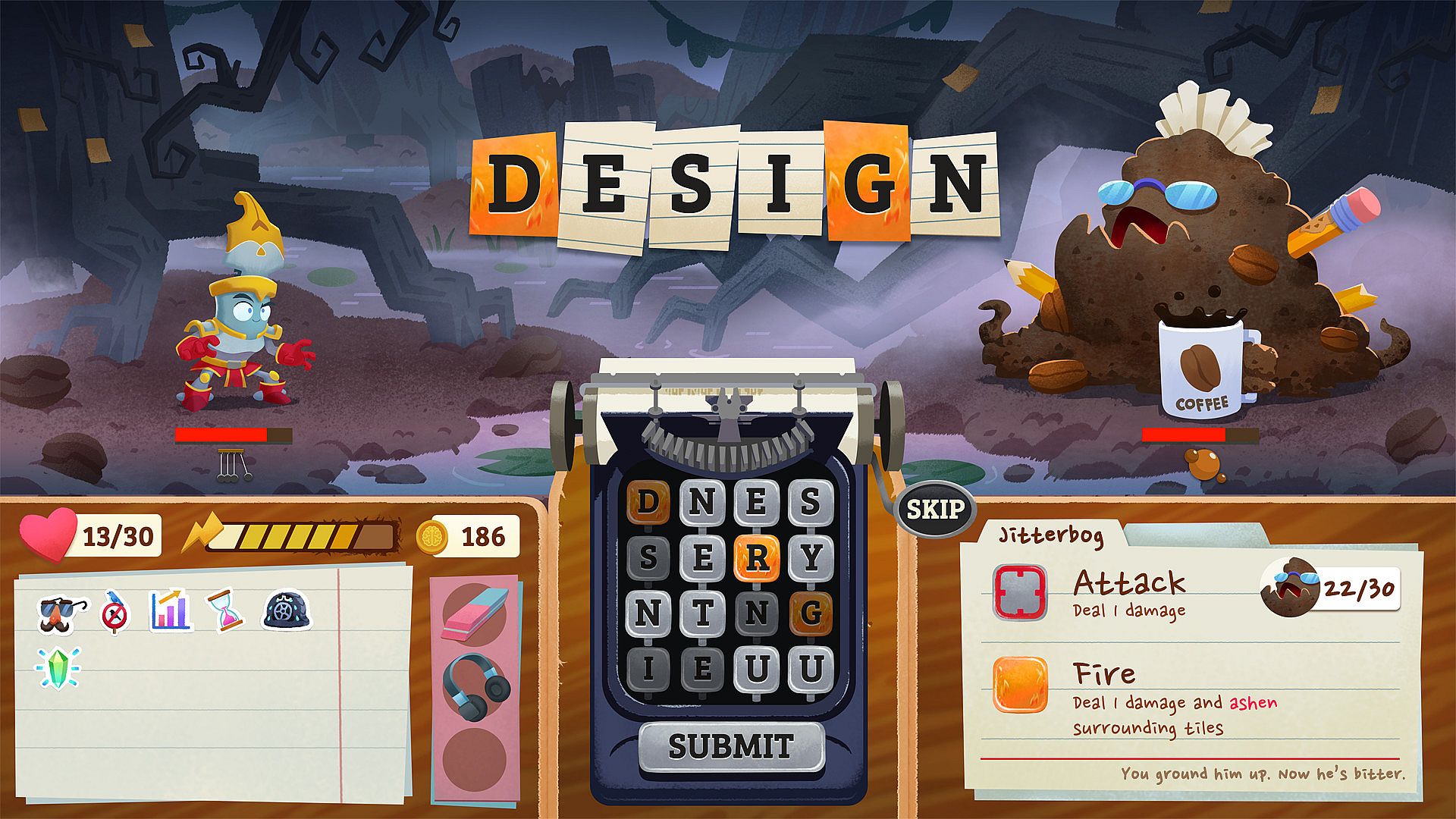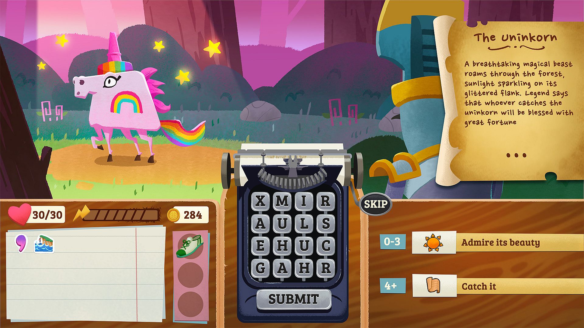 Enter the wondrous world of an author’s imagination. Battle mental monsters standing in the way of writing a book. Spell out words to fight absurd opponents and evade their devious abilities. Your vocabulary means the difference between victory and defeat.