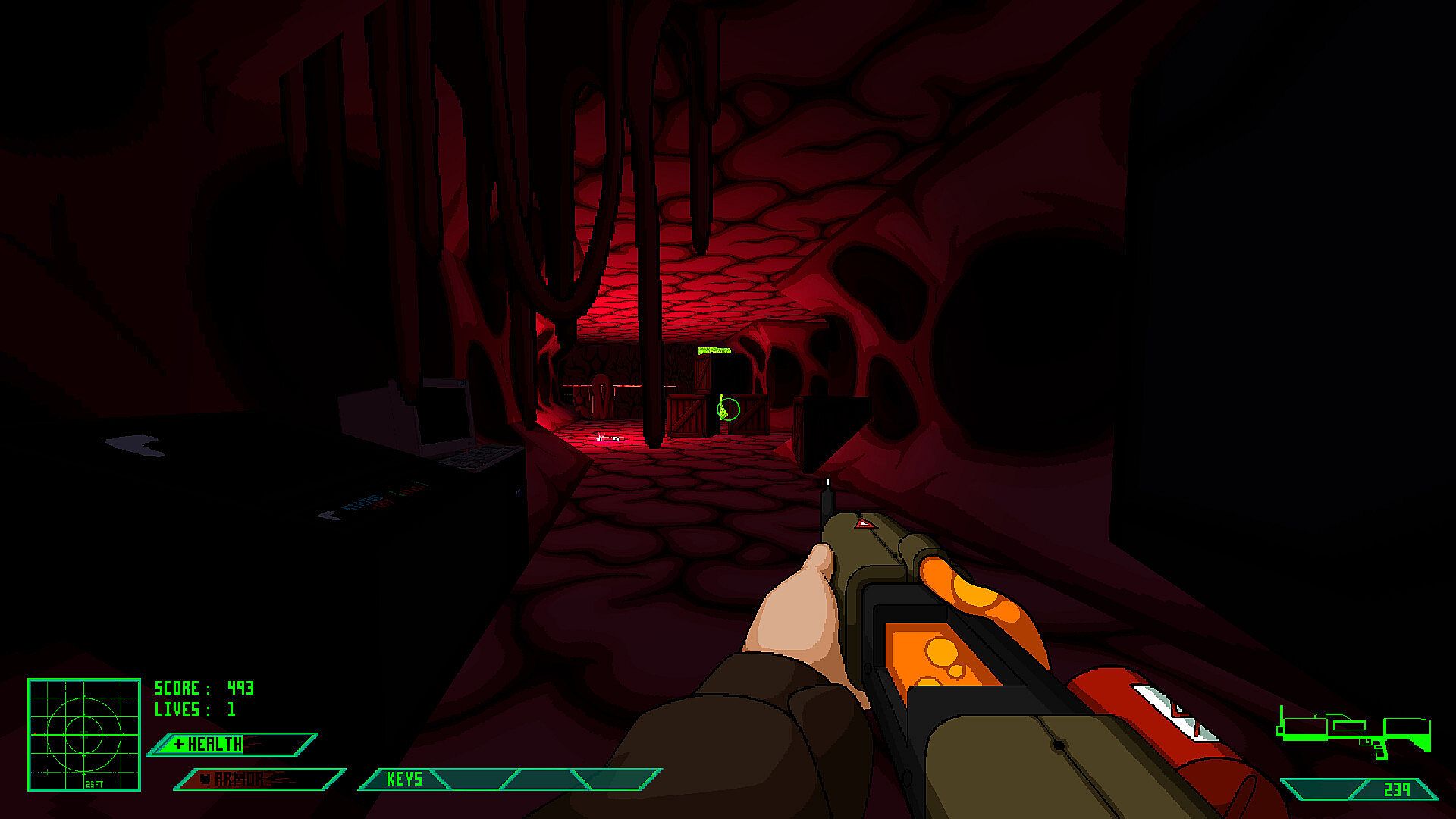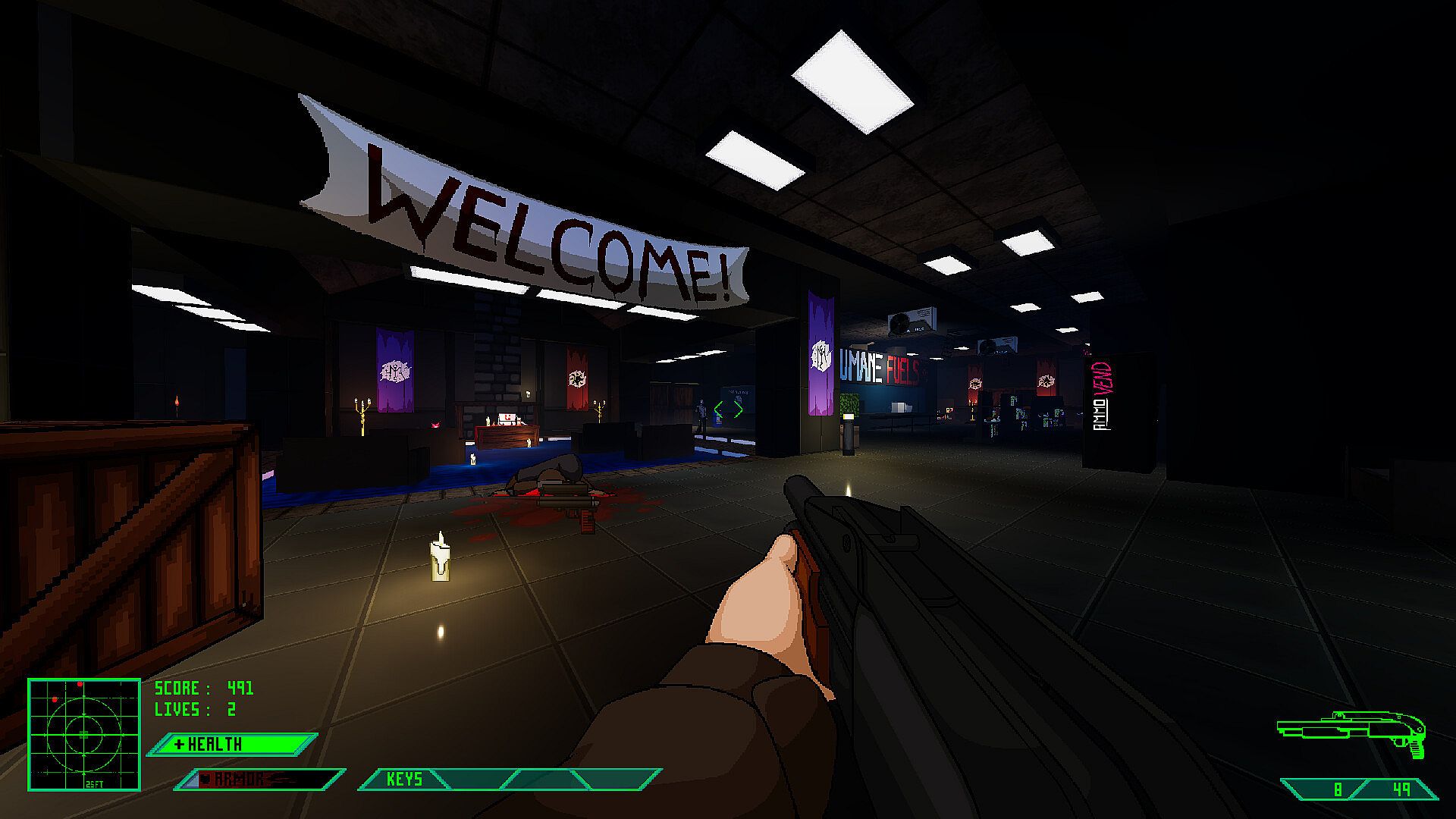 The year is 1997 A.D. You're a throwaway bounty hunter for the local Sheriff's Department. You've amounted quite a debt buying useless crap hoping it would make you happy, it didn't. After a late shift of bagging scum off the streets, home was too far away and that gas station seafood from earlier has just wreaked havoc on your insides. Just in time you arrive at a Humane Fuels truck stop just off the interstate. While making yourself comfortable in one of the disgusting restroom stalls, you notice a photo of the Humane Fuels/Meats' baron with $5,000 bounty on his head. Considering who he is, accepting this job will make some very important people very angry with you. On the other hand, the money will keep the banks from shipping you to an off-world mining site.