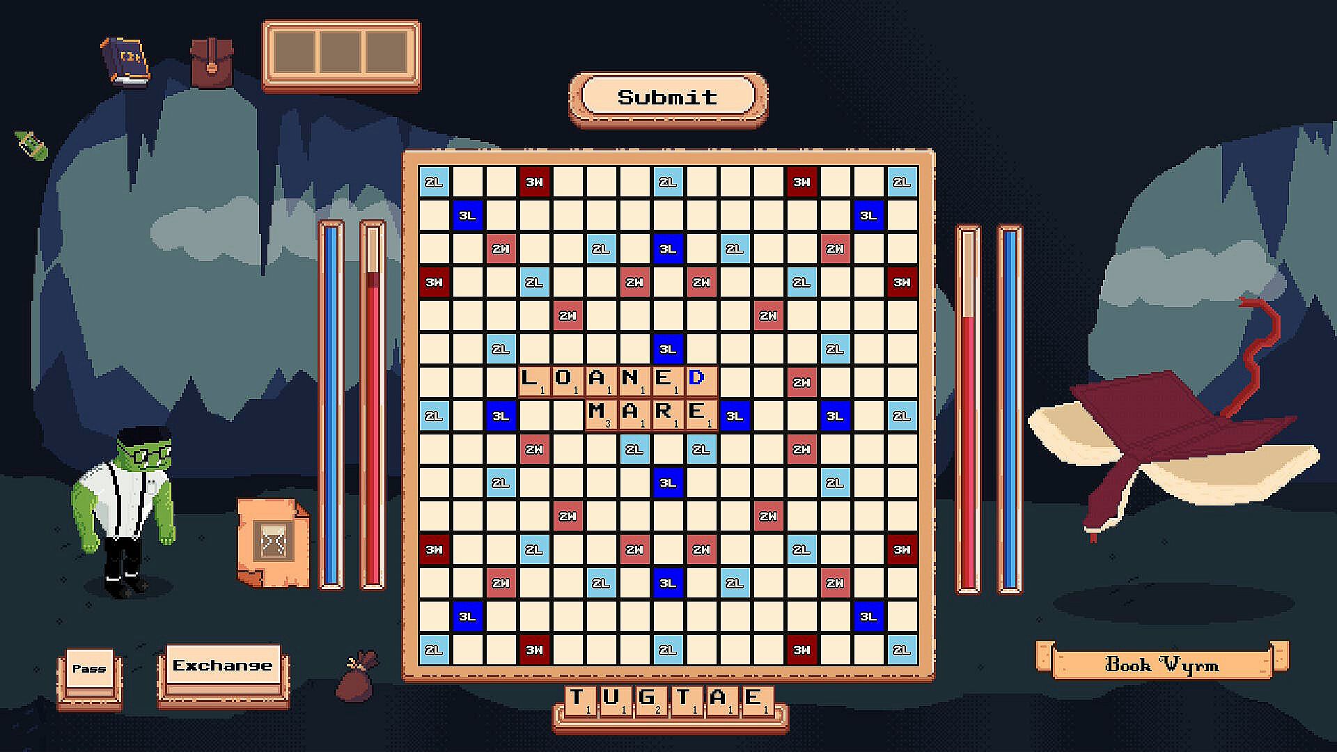 Wyrm Words is a deck building word puzzle rougelike. Use your words to fight fantasy creatures with unique abilities. The words you play determine the strength of your attack.