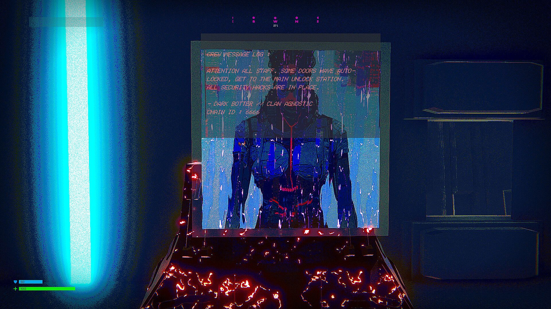 A single player, first person shooter, adventure game featuring voice acting and sound design. Explore space stations and future city environments, collect items to further your investigation. A somewhat gritty, storydriven, cyberpunk-ish, drone shooting, FPS game.