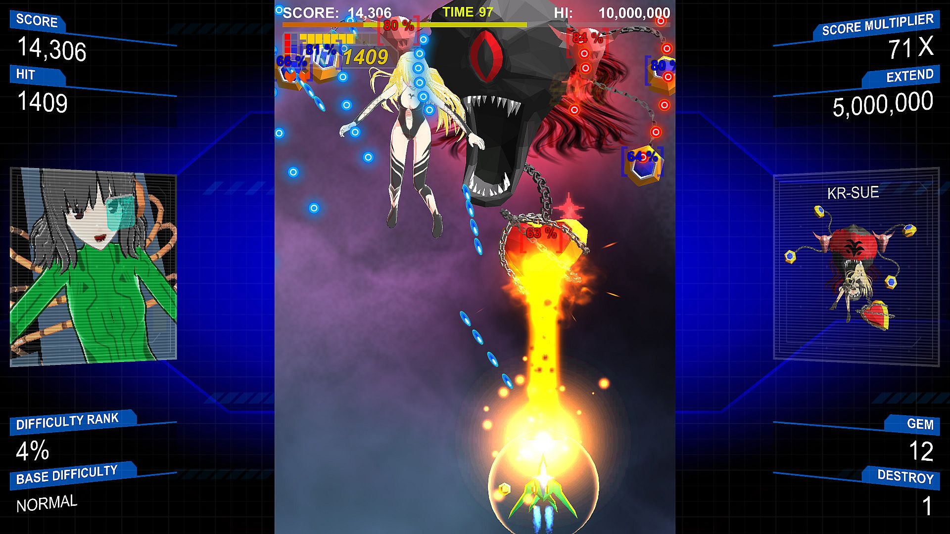 Pilot all-female Executer fighter ships in this vertical shoot'em up set in 2564, where mankind battles the invading X.GHOST lifeforms from a hidden dimension. Select from three ships plus one unlockable, each helmed by cute XCUTE girls, and unleash red guns, blue guns, or special bombs and lasers against waves of enemies. Cancel bullets by matching colors-red for red foes, blue for blue-and watch sexy bosses take cloth damage across five stages, two loops, and a true last boss. Practice any stage, tackle three difficulty levels, and climb Steam leaderboards with achievements. TATE mode rotates the screen for vertical play on PC. Hardcore action fans chase high scores through precise shooting and strategic bomb use.