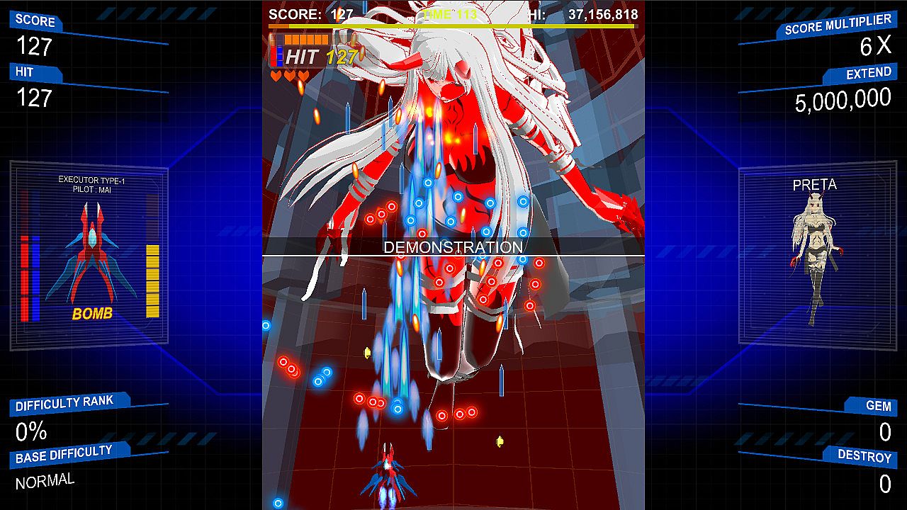 This is a Vertical Shoot'em up game of the all-female characters. Choose your favorite Executer fighter ships with the XCUTE girls pilot and go on to fight the X.GHOST villainess.
