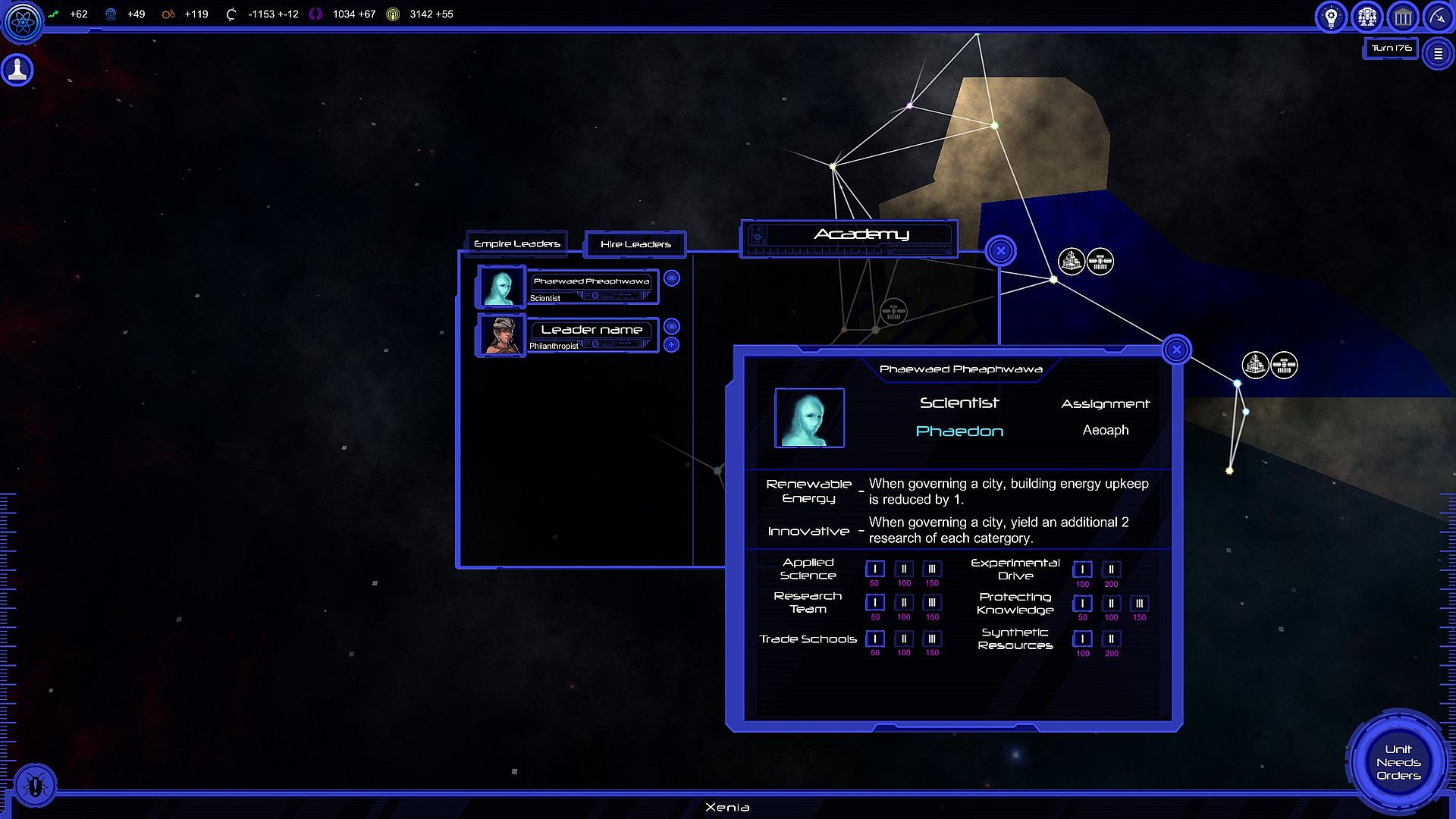 Hire leaders to govern cities or command military units, and invest in new traits to improve their effectiveness. - Diplomacy