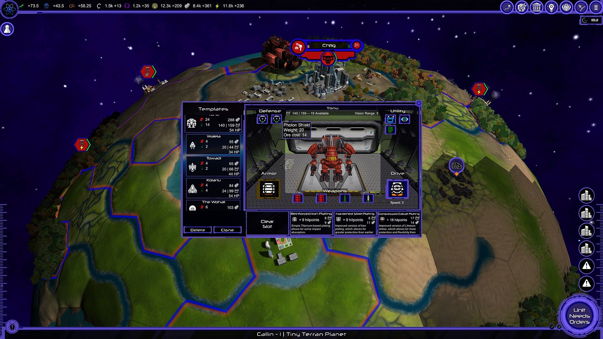 Outfit your military units with the latest weapons, shields, and utility, or tailor them for specific missions. - Tactical Planetary and Star System Combat