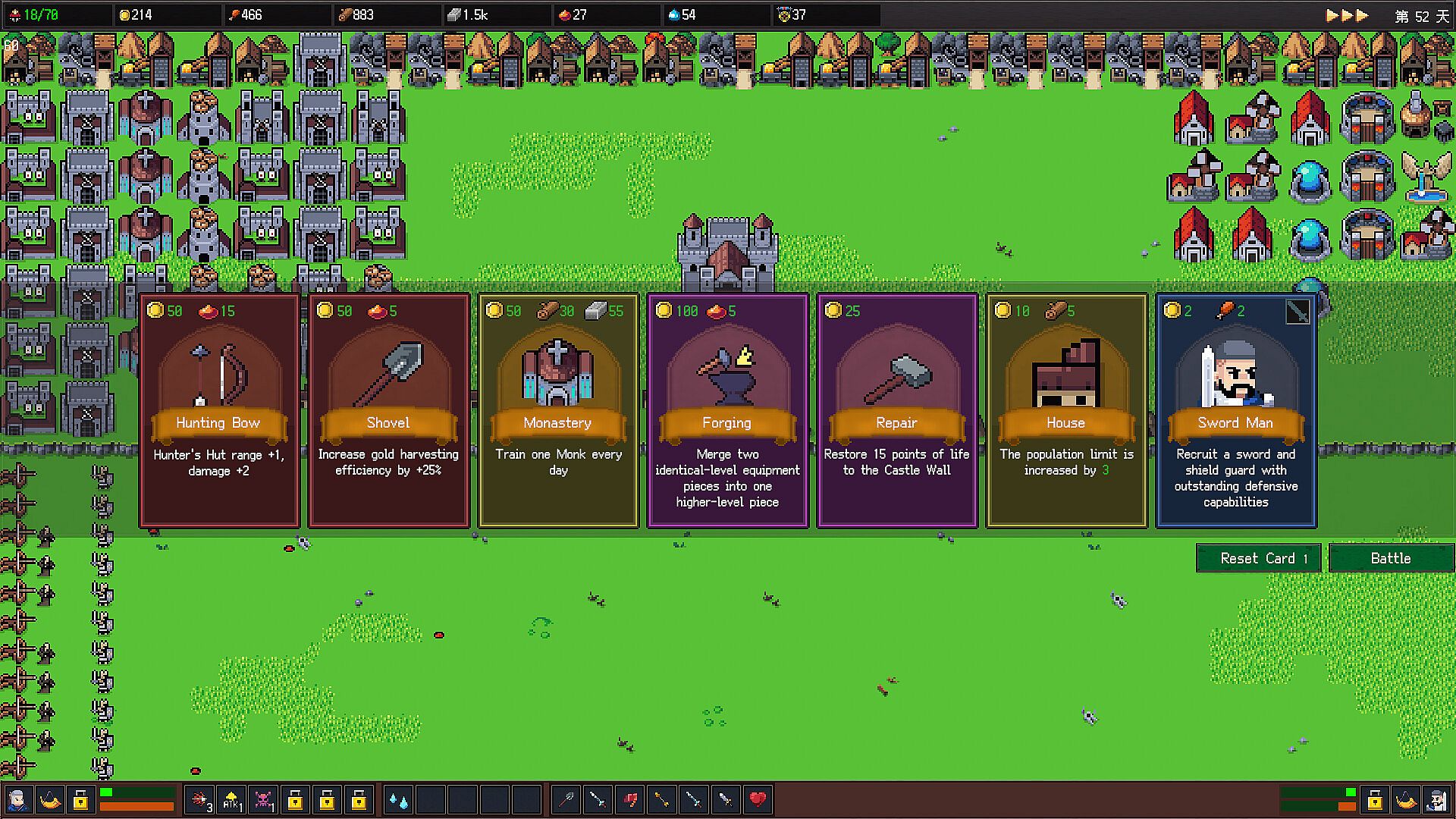 Every day, use randomly generated cards from a pool of over 100 different cards to construct the city, build defenses, establish barracks, and more.