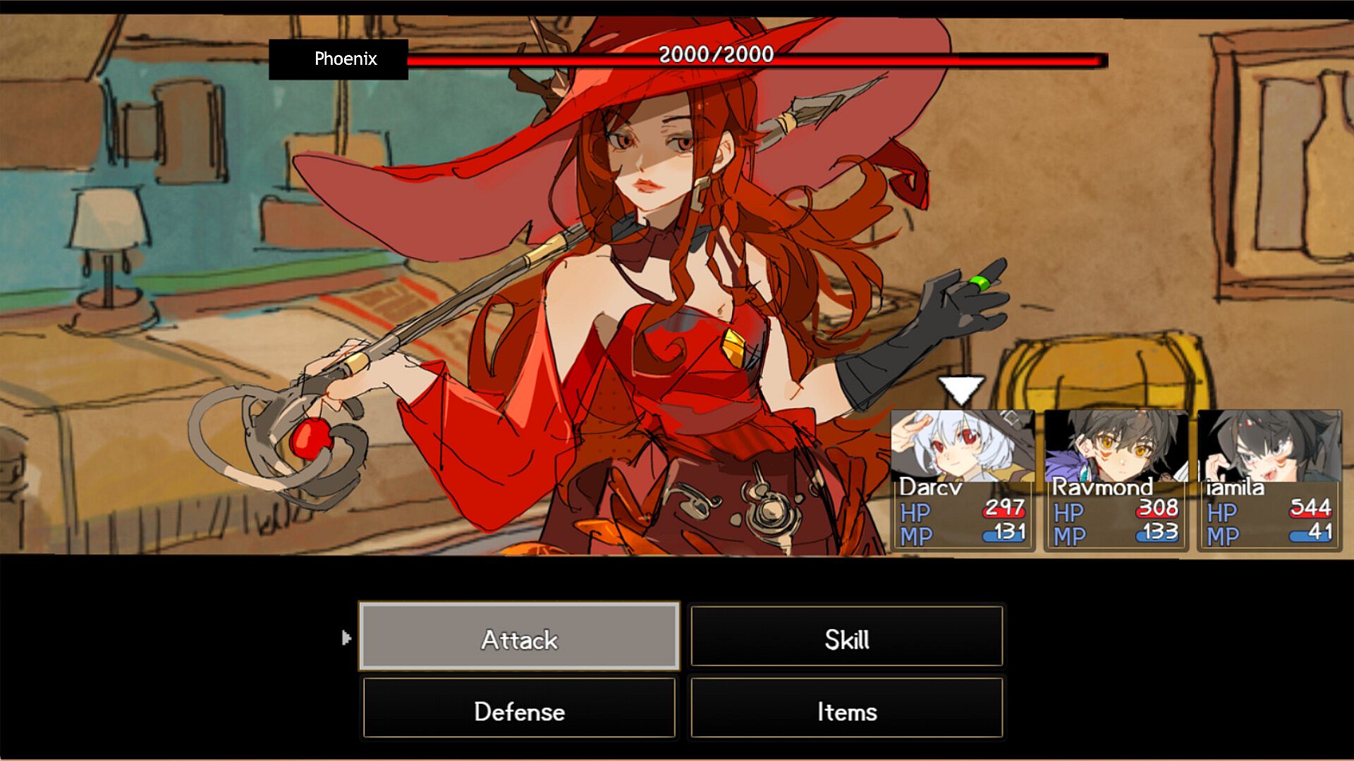 This is a 2D adventure game centered on map exploration and turn-based combat.
