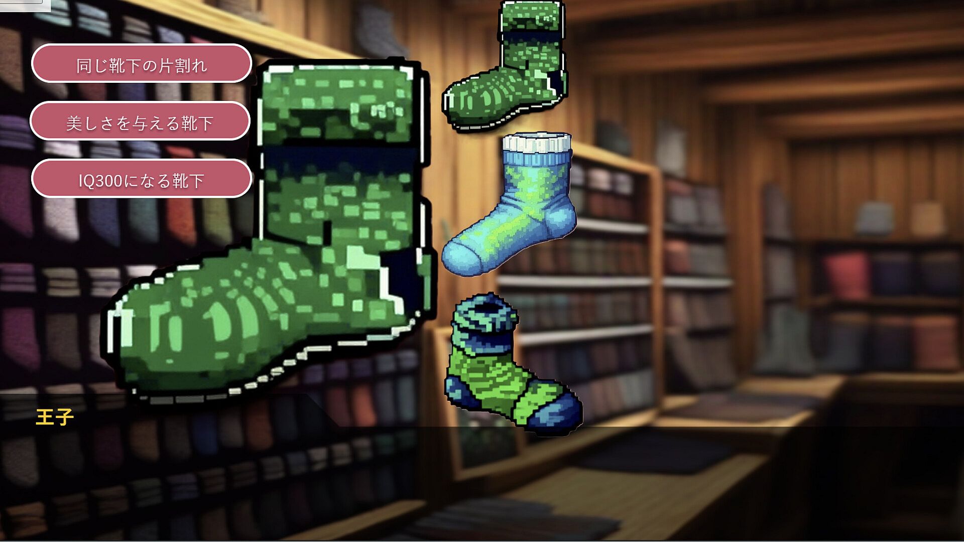 The objective of this novel game is to manifest "socks" from the hearts of customers who visit the store and select the perfect custom-made socks. Making the correct choice will display "BINGO" and allow you to proceed to the next chapter.