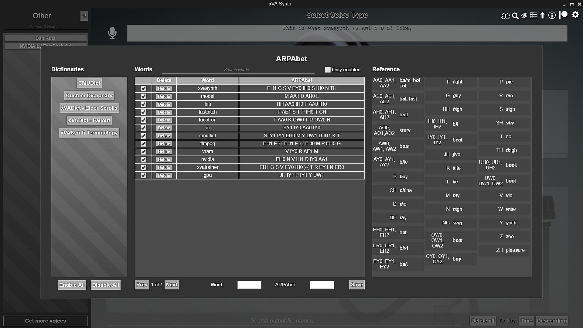 You can specify exact pronunciation for words by using ARPAbet notation between { } brackets in the input, or by managing words in your own (or other people's) dictionaries. Included is CMUdict with 135k words with American-English pronunciations. NOTE: v3 introduces several new ARPAbet symbols, for a custom extended version of the ARPAbet spec which includes sounds more typically found in other languages.