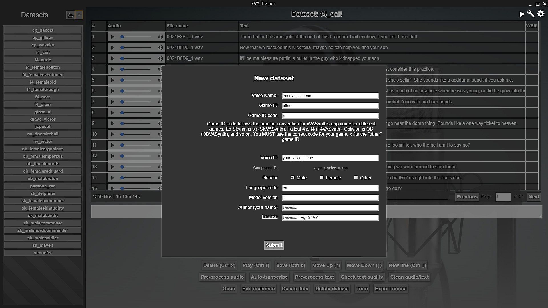 xVATrainer is the companion app to xVASynth, the AI text-to-speech app using video game voices. xVATrainer is used for creating the voice models for xVASynth, and for curating and pre-processing the datasets used for training these models. Check the nexusmods page description for more details, instructions, and updates. Join the Discord for support, and community advice.