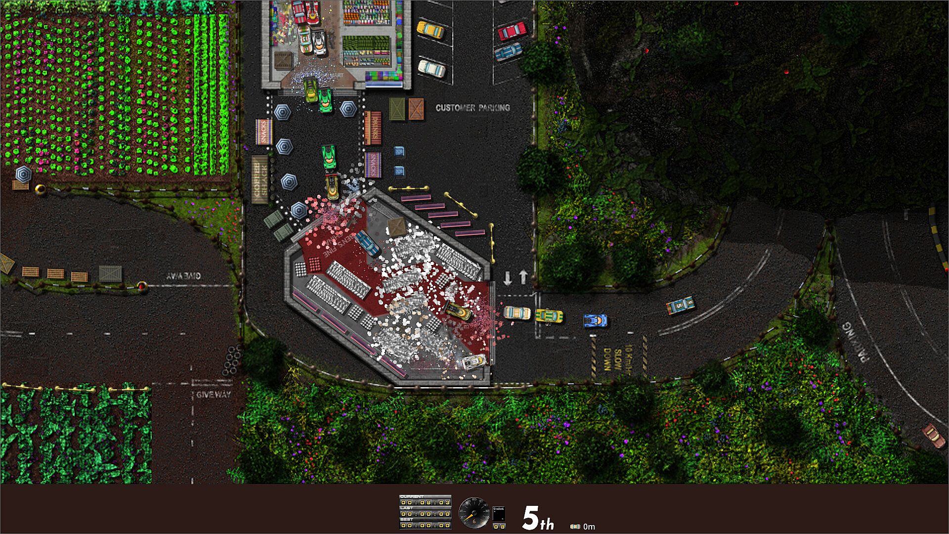 A thrillingly fast, top-down 2d racer that blends lovingly detailed scenery with wanton destruction.