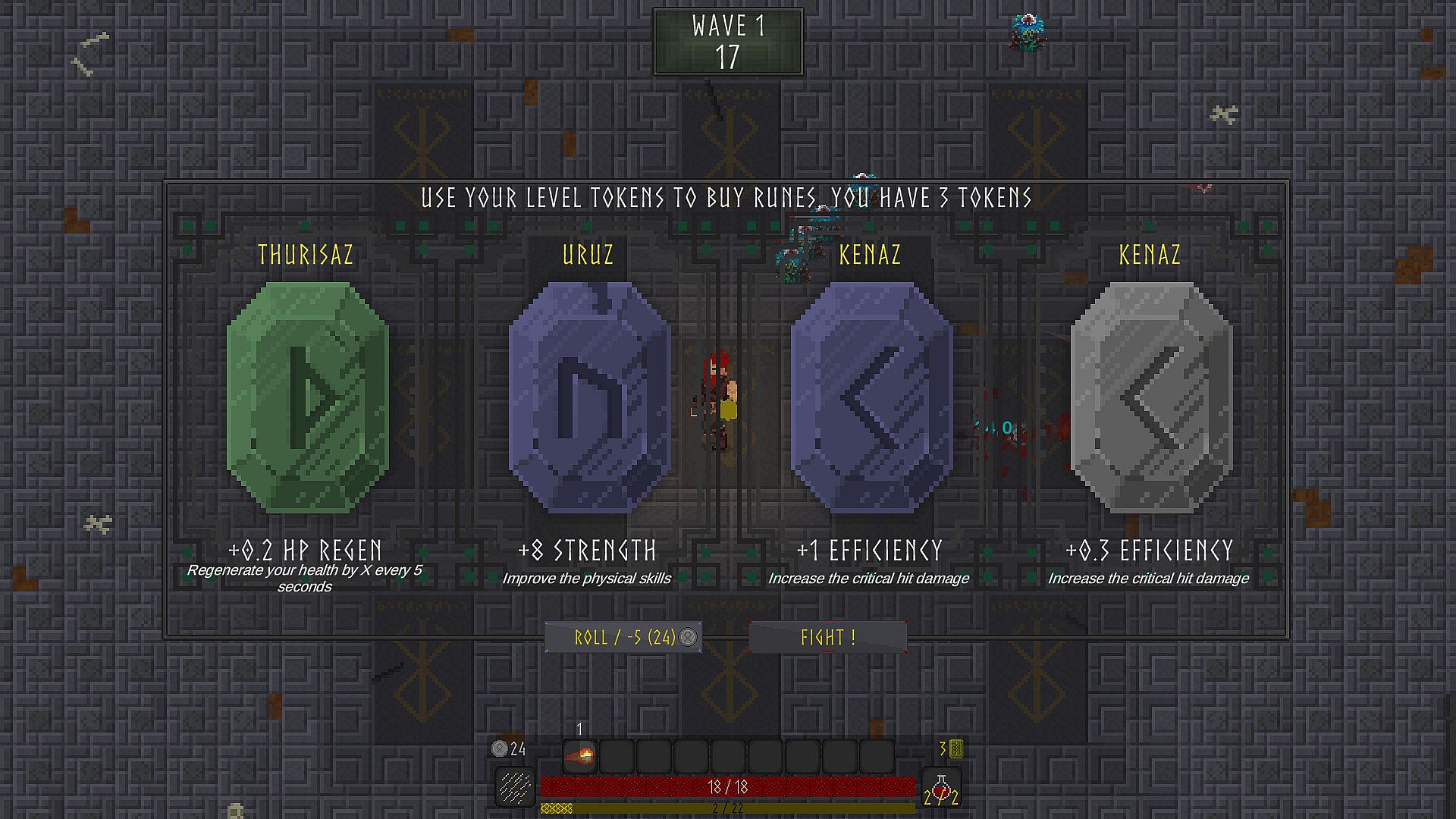 Choose one of the Defenders, build your character with many skills, stats, passives and survive waves of monsters that try to invades the realms of Yggdrasil. By surviving or dying, you collect helcoins that can be used to buy permanent bonuses.