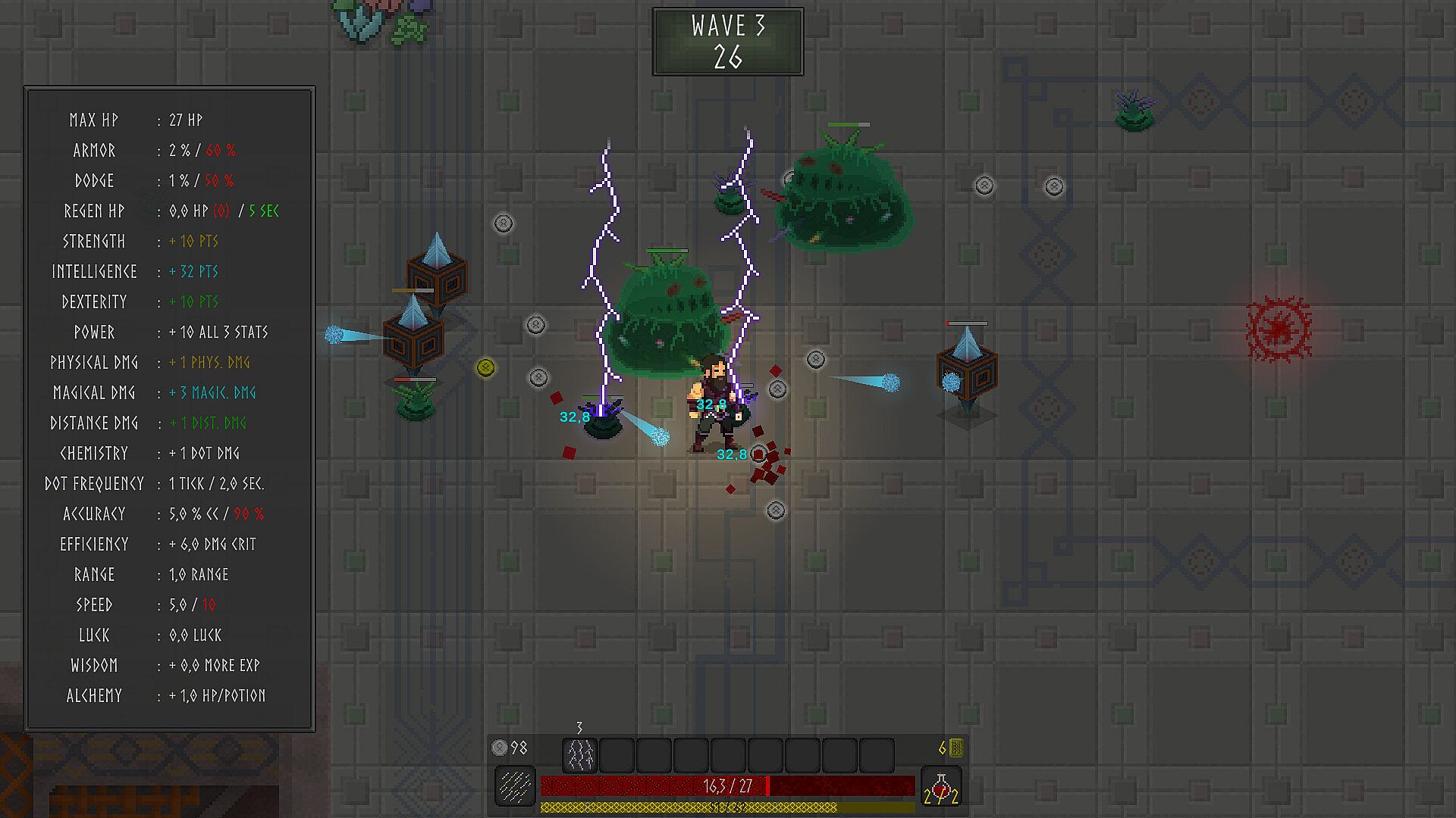 Survive wave : By finishing one wave, you will be able to buy skill scrolls or stats scrolls. Skill scrolls will level up your skills and stats scroll will give you multiple stats.