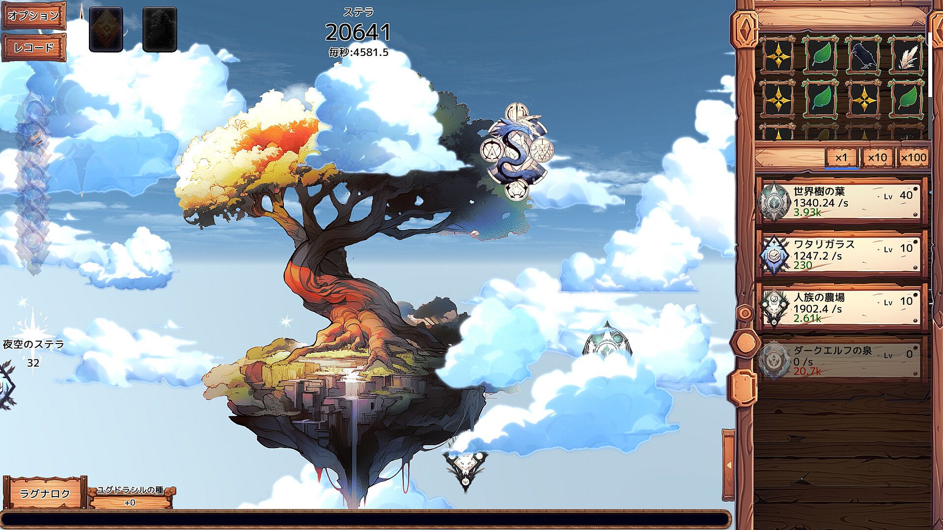 In a decaying world stripped of Holy Spirits and the World Tree, plant the final seed entrusted by a goddess to restore life. Click the World Tree to synthesize Stella, which bolsters the tree and revives Spirits through consumption and upgrades. Strengthen roots across day-night cycles tied to real time, trigger Ragnarok to rebuild worlds with converted Yggdrasil Seeds, and tackle mini-events drawn from Norse mythology for boosts like Bifrost pieces or Gungnir auto-clicks. This indie simulation offers over 300 hours of progression, a music player with 50+ tracks that shift with game advancement, and 100 achievements to unlock. Players who savor long-term synthesis loops, Spirit enhancements unlocking skills and functions, and leisurely scenery changes find a perfect fit.