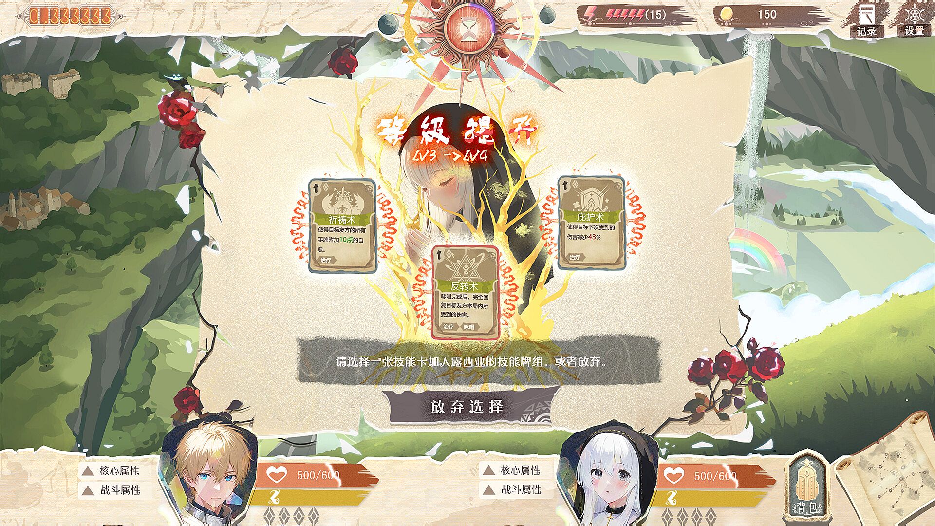 游戏的角色养成是一个颇有深度的卡牌构筑玩法。并且在其中加入了一点点rouge,玩家所操控的角色在升级之后将会随机三张技能卡中挑选一张加入自己的牌组。在深渊探索之中,也有机会获得一些技能卡牌。通过玩家的抉择,一步步构建自己的最终流派。