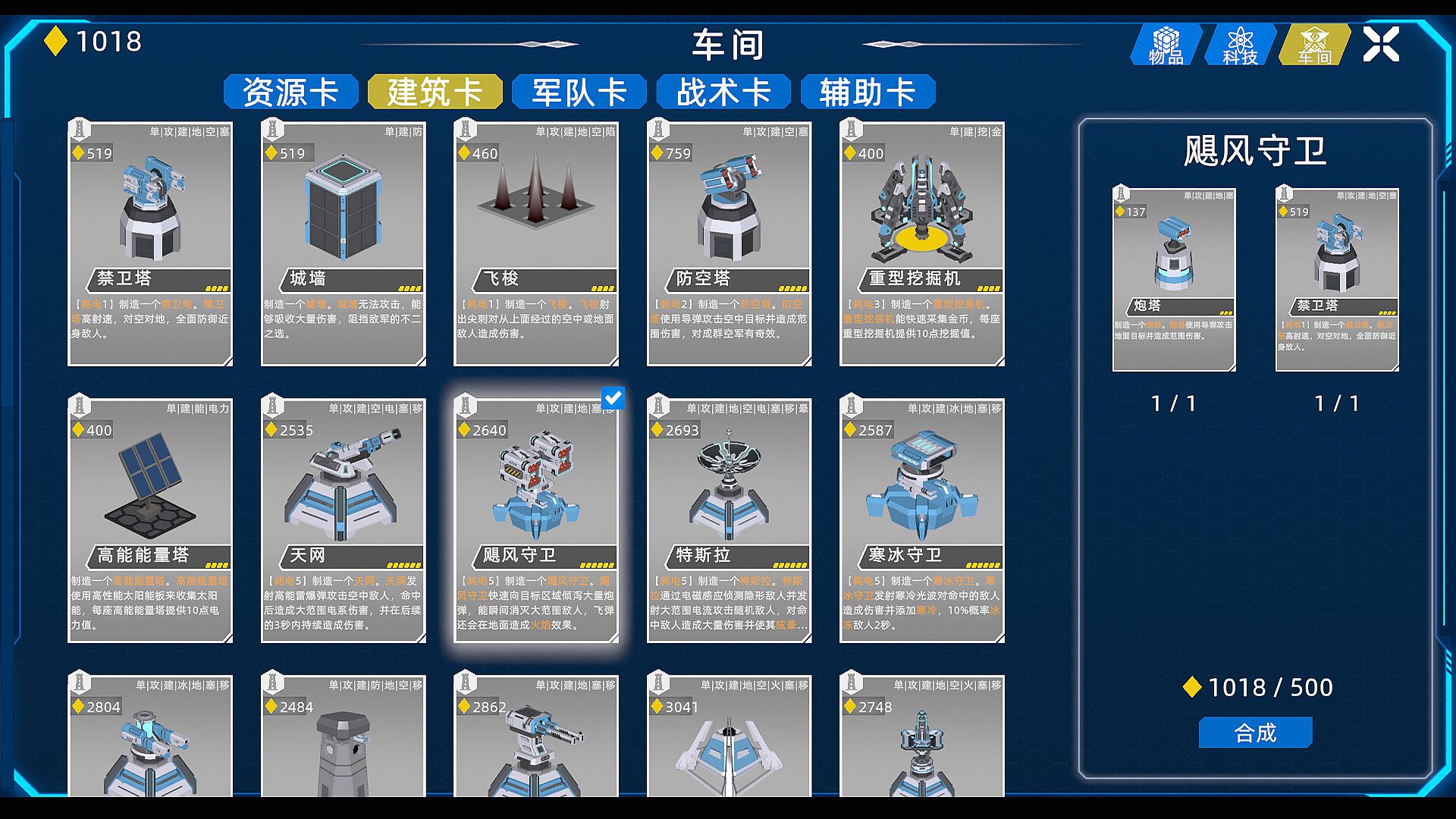 车间:通过消耗低级卡牌和金币,获得高级卡牌。合成功能中的高级卡牌通常代表着构筑路线。