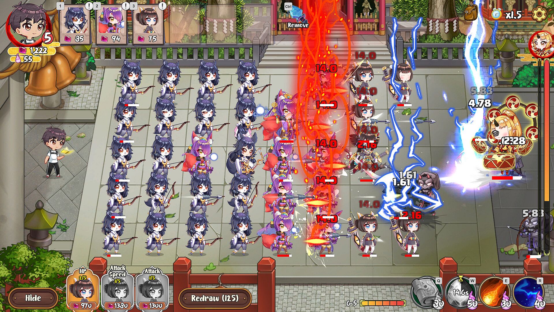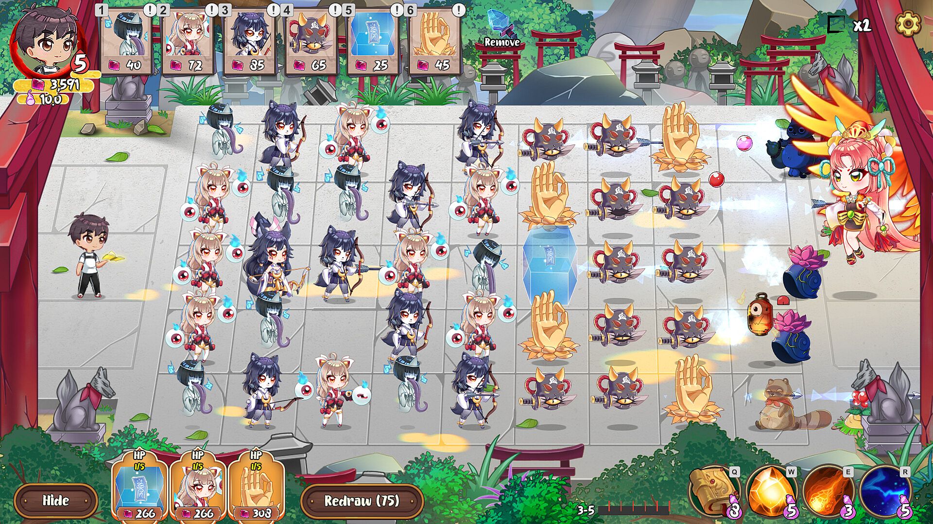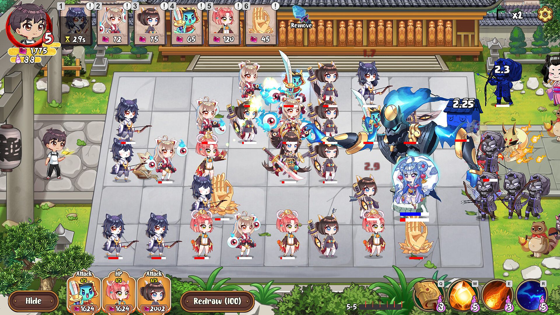 Vary Japanese folklore yokai with different attack patterns—long-range, melee, tanky unit..