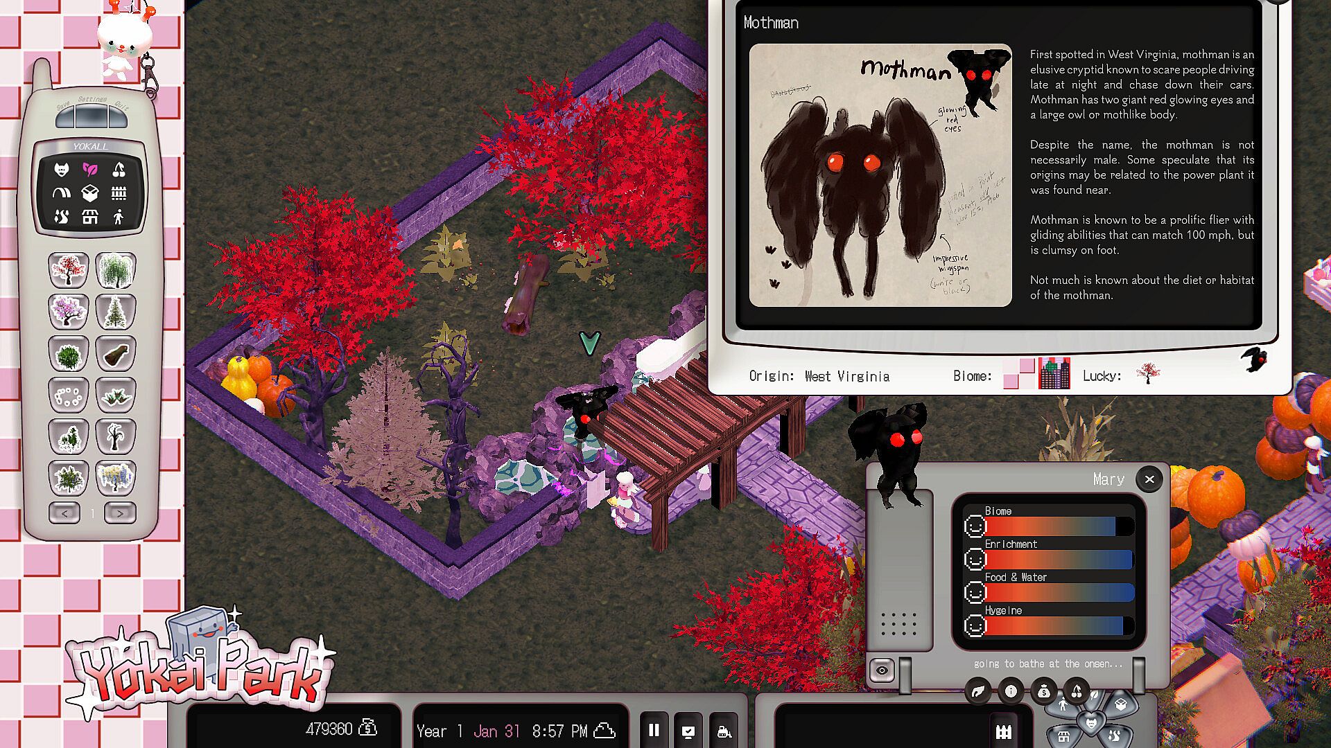 Do you love yokai, cryptids, and monsters? Perfect! You're needed to come help take care of Yokai Park, a nostalgic game that puts you in charge of managing and decorating a sanctuary for displaced creatures!
