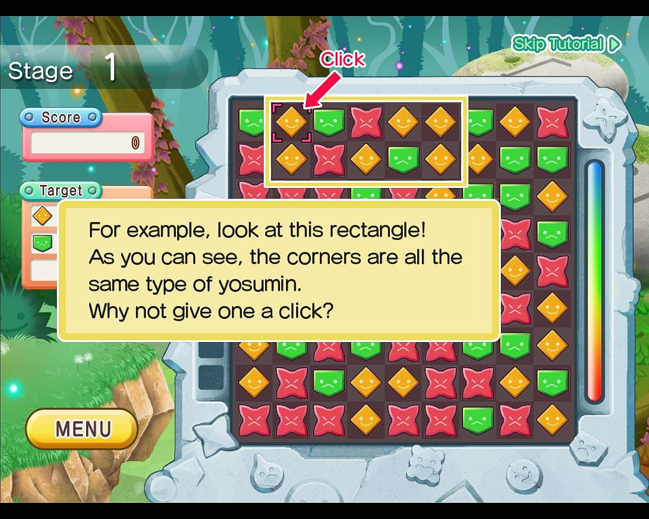 Make rectangles of the same type of yosumin to make them disappear in this mind-bending puzzle game. The more you get, the better you'll feel!