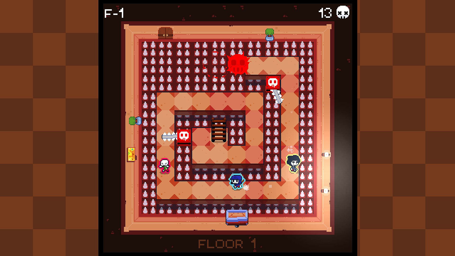 - Up to 4 players: Cooperate! Only one needs to complete the floor