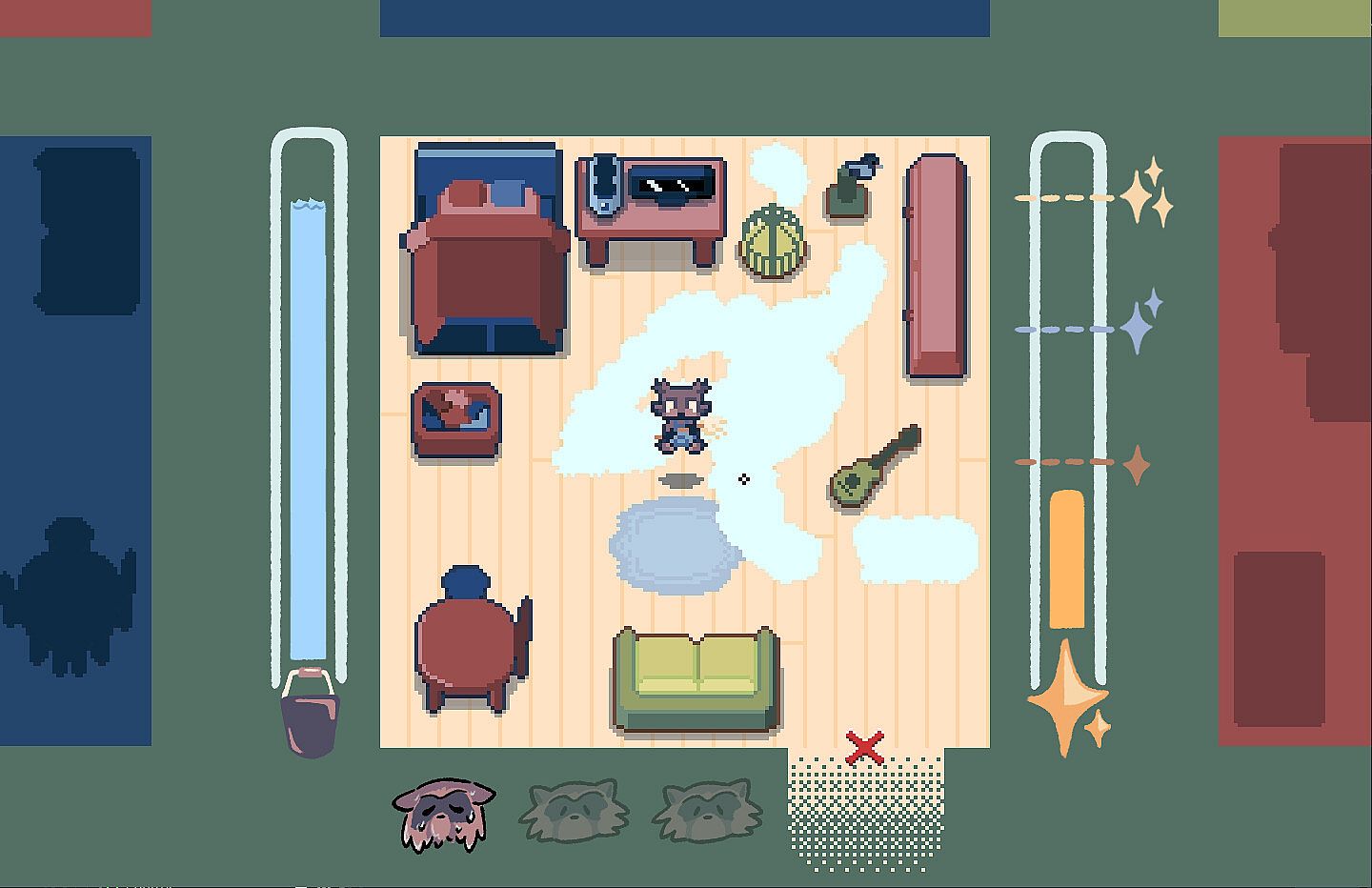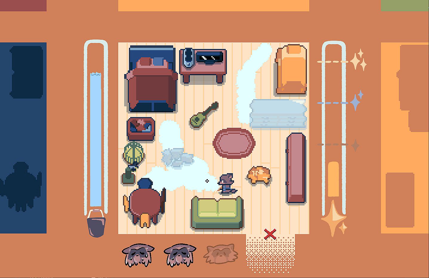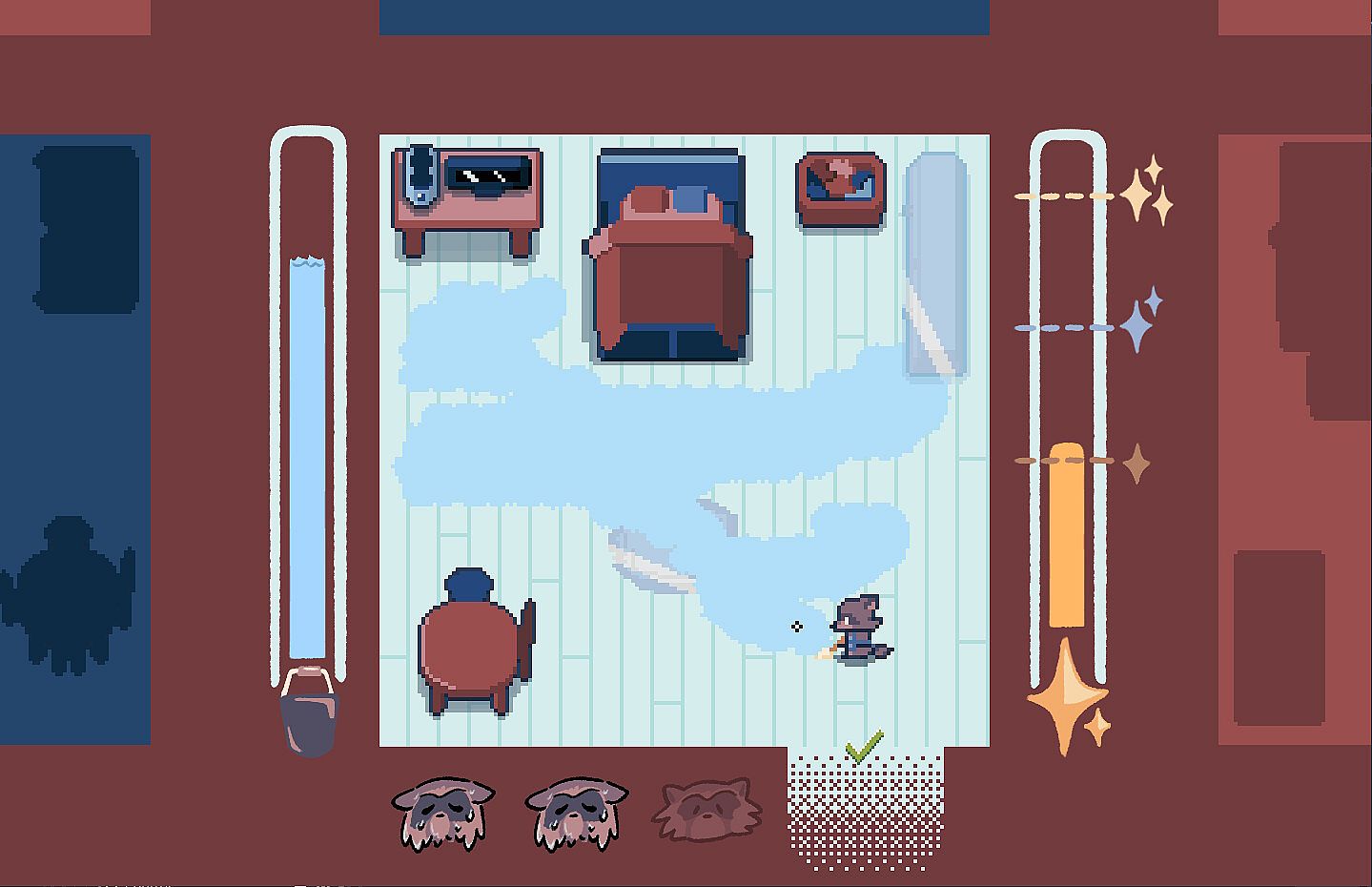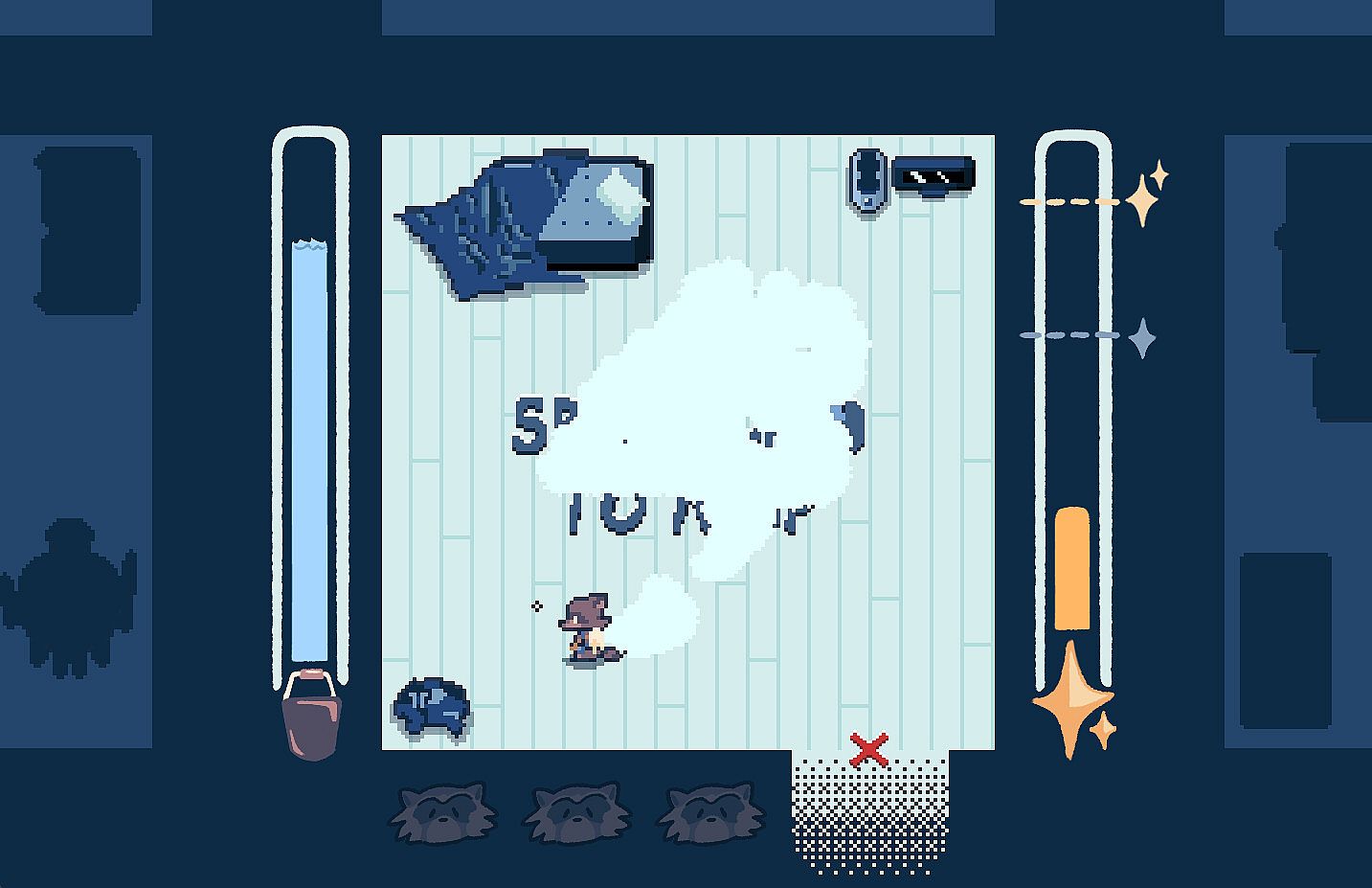 Play as a raccoon scrubbing the floor before a visitor arrives. This indie casual game demands precise mouse or controller movements to clean around corners and spare your furniture from water. Challenges ramp up as your family expands and furniture piles in. Sharpen fine motor skills in short arcade-style sessions laced with a lighthearted tale of change. Precision mopping tests your dexterity amid growing household clutter. Casual players who relish tight control schemes will find a quick, focused challenge here.