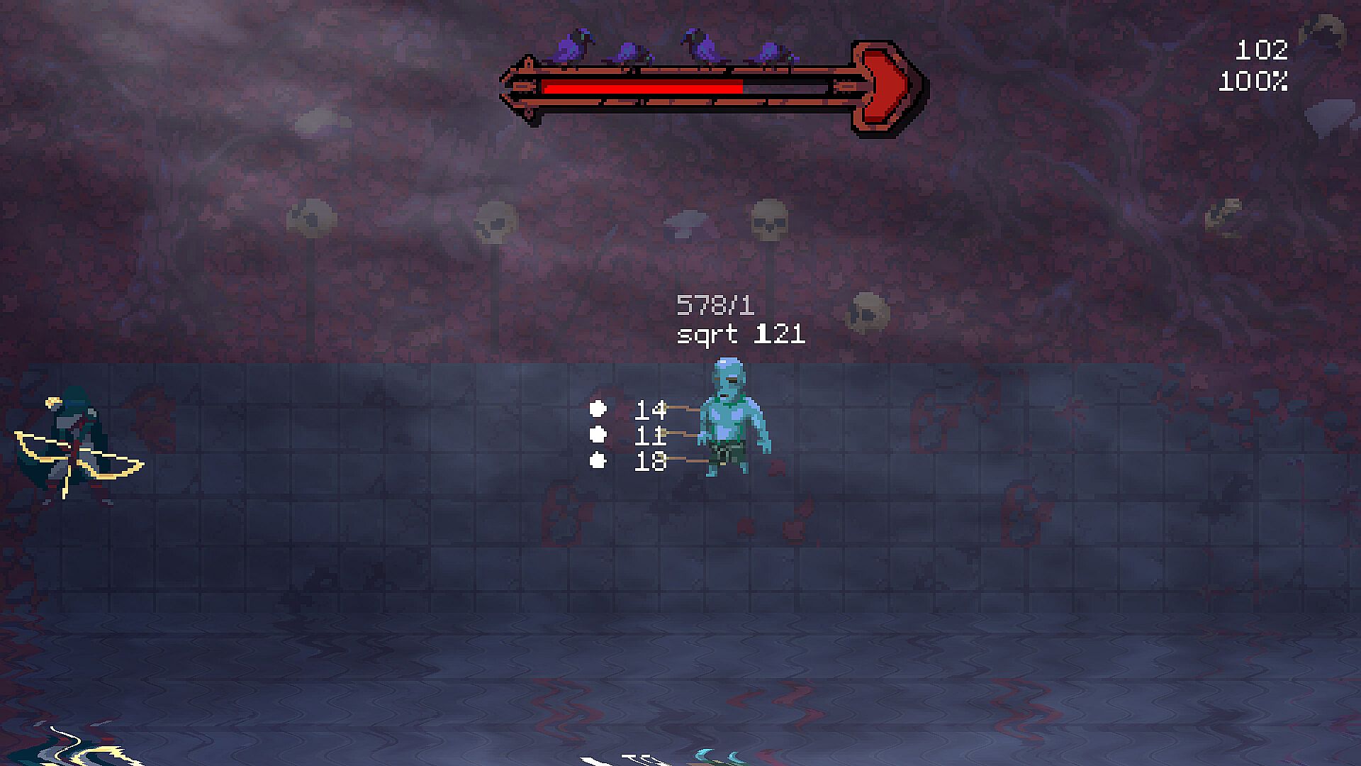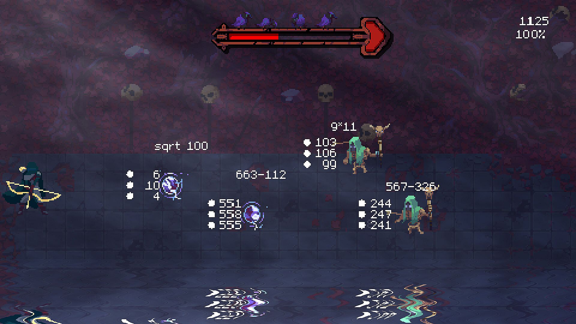 Each enemy that comes towards you has a math expression above their heads, and three answers next to them. Select the right one in order to defeat them.