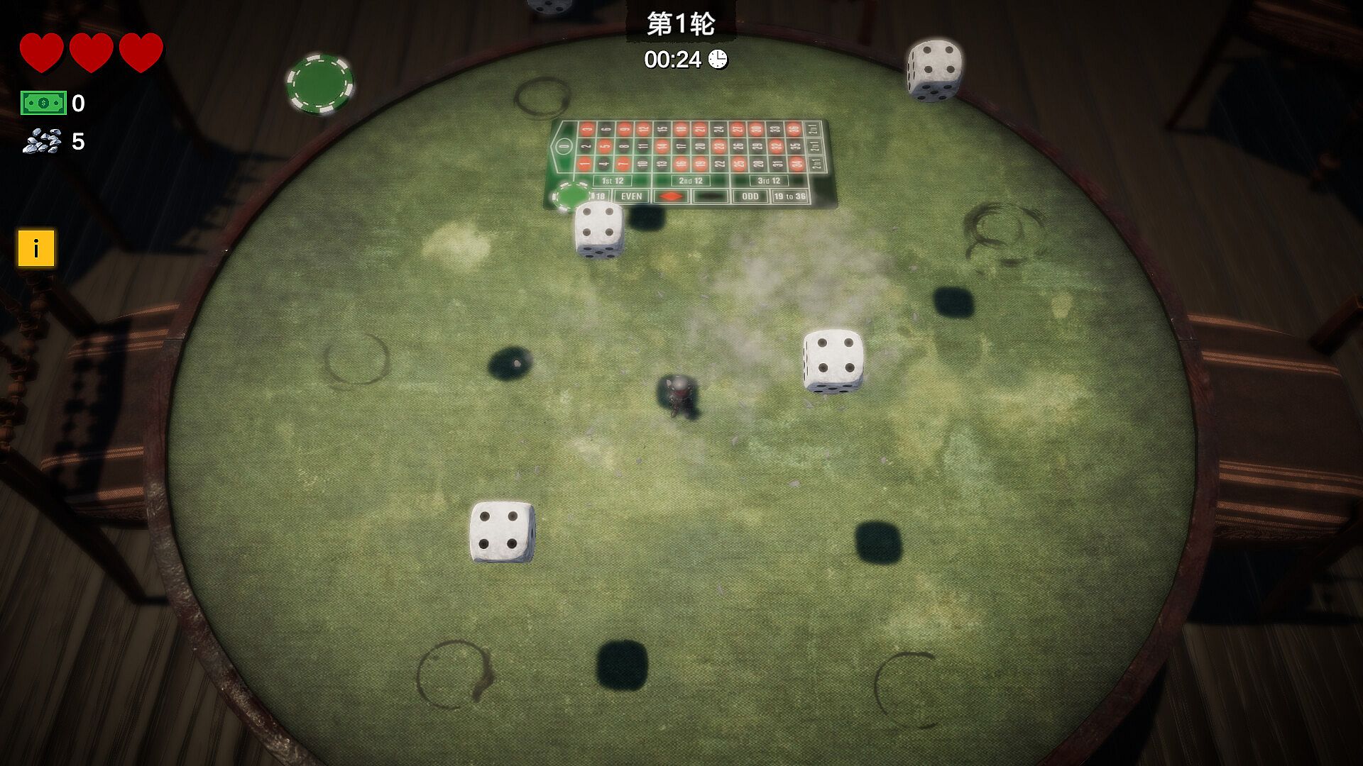 Jack, a winning gambler, is trapped at the gambling table by his angry boss's magic spell. He is horrified to find the dice rushing towards him. Only by gripping his playing cards tightly and shattering all the incoming dice can he hope to escape the table alive.Meanwhile, don't forget your golden dice friends; trade the dice souls you've collected with them to gain incredible power.