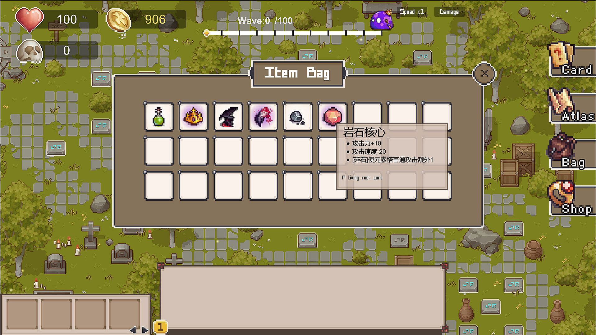 Elite monsters may drop various magic props when they die. Equipping them to the element tower can strengthen various abilities of the element tower or bring special effects.