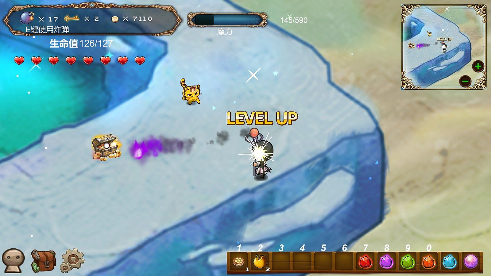 - 打怪可以升级及掉落物品与货币。