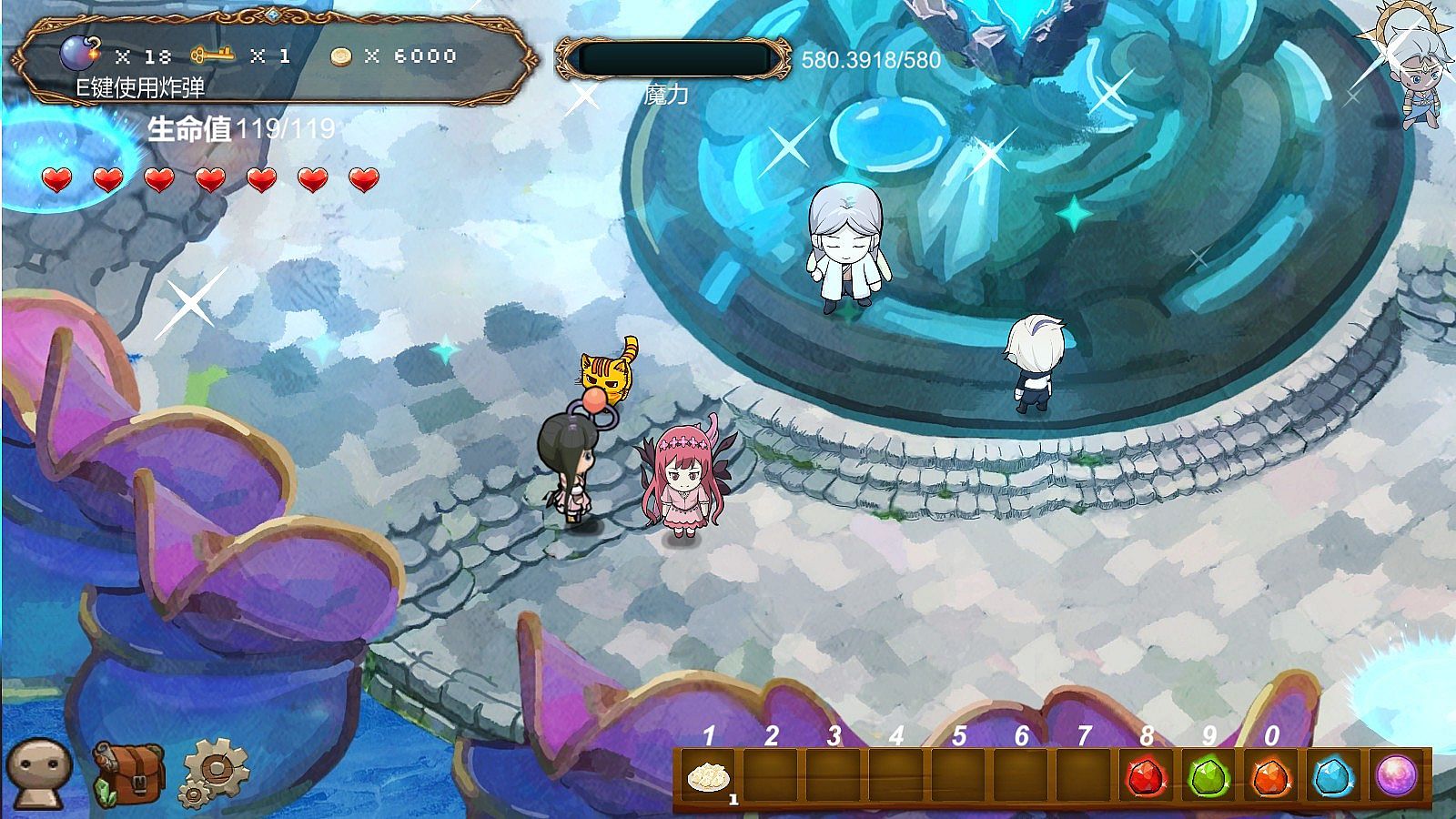 本作是一款休闲复古的2D RPG游戏,玩家可操作主角月露进行主线剧情、打怪地下城刷刷刷、轻养成以及换衣服和带猫猫宠物等。本来是橘喵喵一个人的独立游戏工作室,但现在有了很多好朋友的帮忙,具体负责放底部!