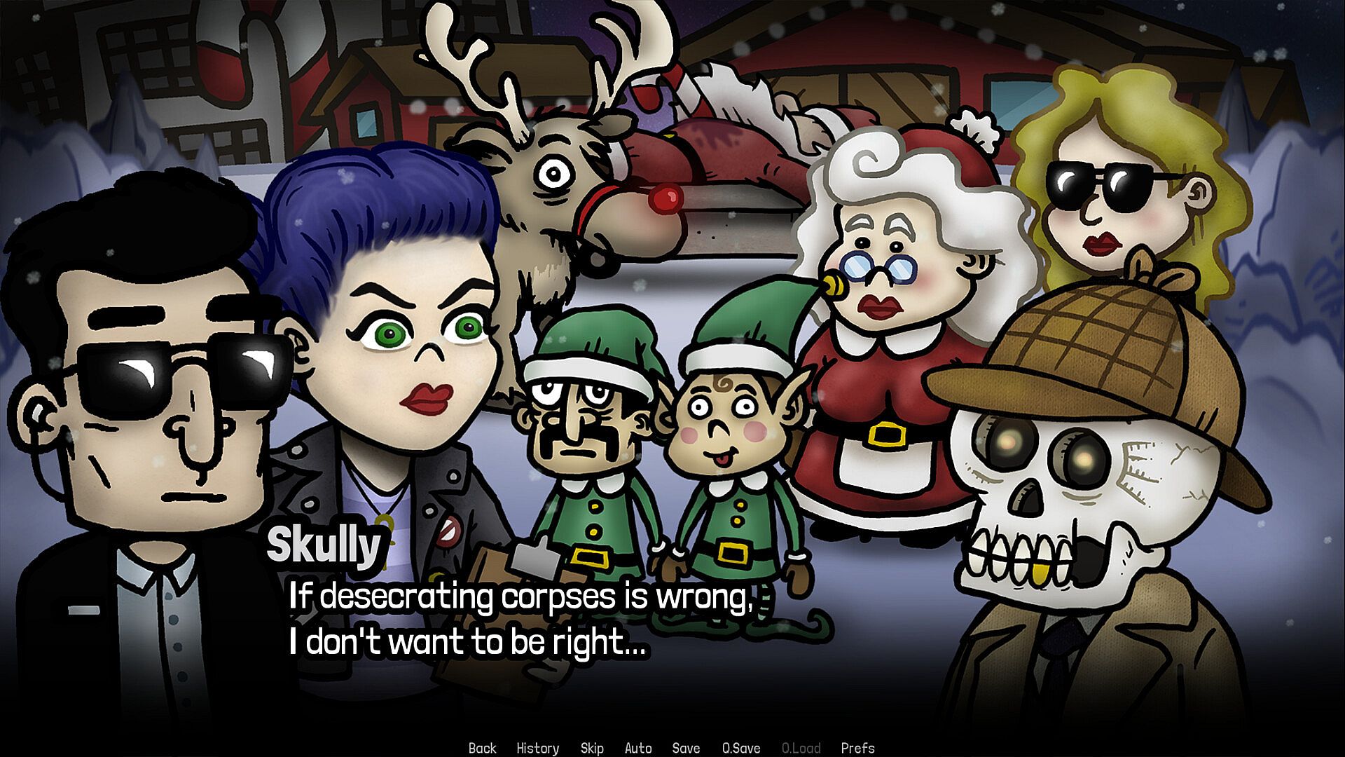 Santa Claus, the King of Christmas, has been murdered. Brutally butchered in his Throne Room on the North Pole. Our dynamic duo of deduction and delinquency, investigative journalist Deliria B. Murder and the undead detective Skullbert "Skully" McSkullface, arrives to the scene in a timely manner, ready to get to the bottom of this scandalous scoop and most-likely-illegal impalement.