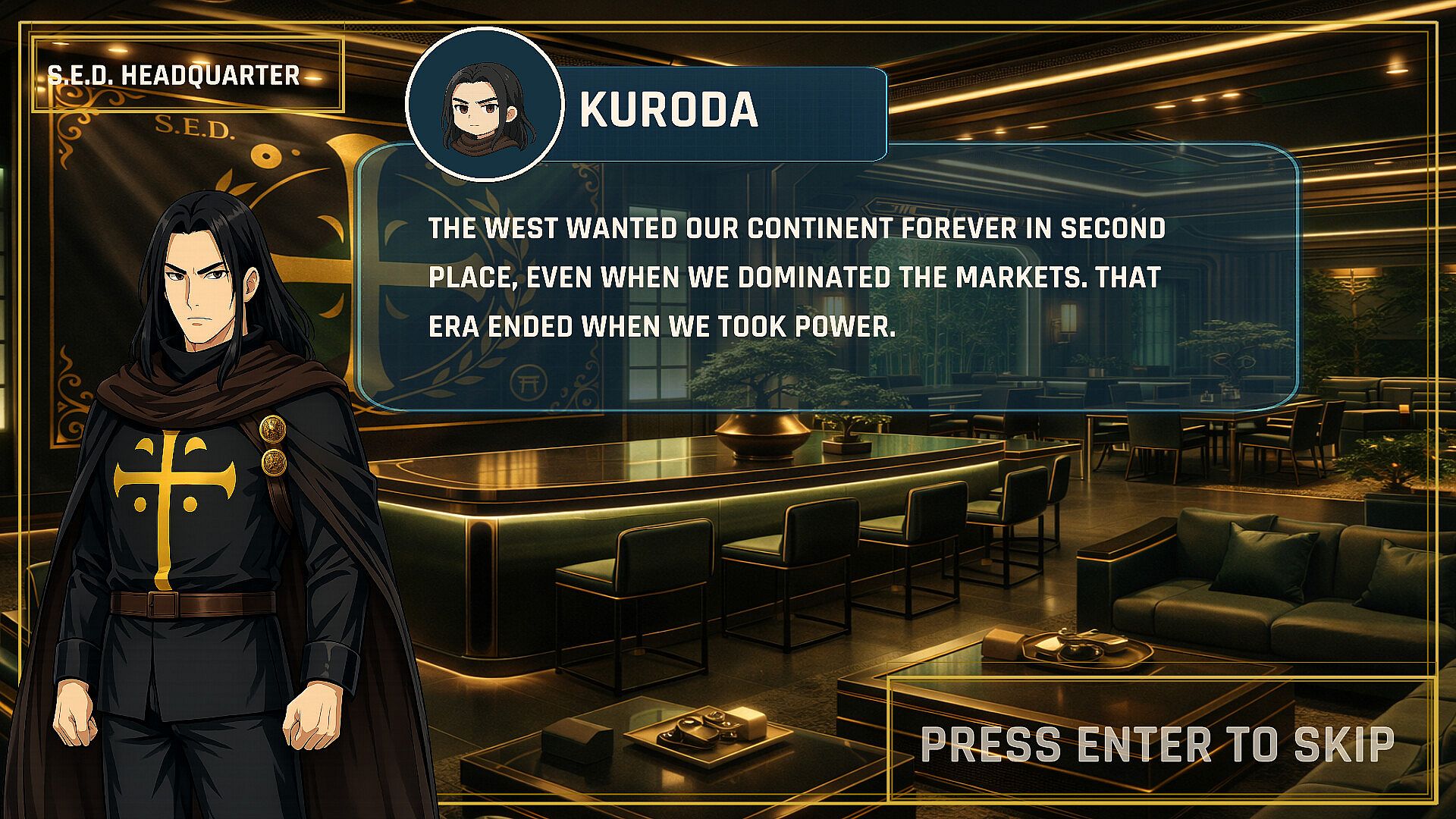 Zaetherfall is a visual novel / shmup focused on a war of factions, propaganda, and decisions made at the edge. Three rival aces—URA, EUPRA, and the Sacred Eastern Dominion—are forced to cooperate as Zael Aether advances as an absolutist theocracy that never negotiates: it purifies.