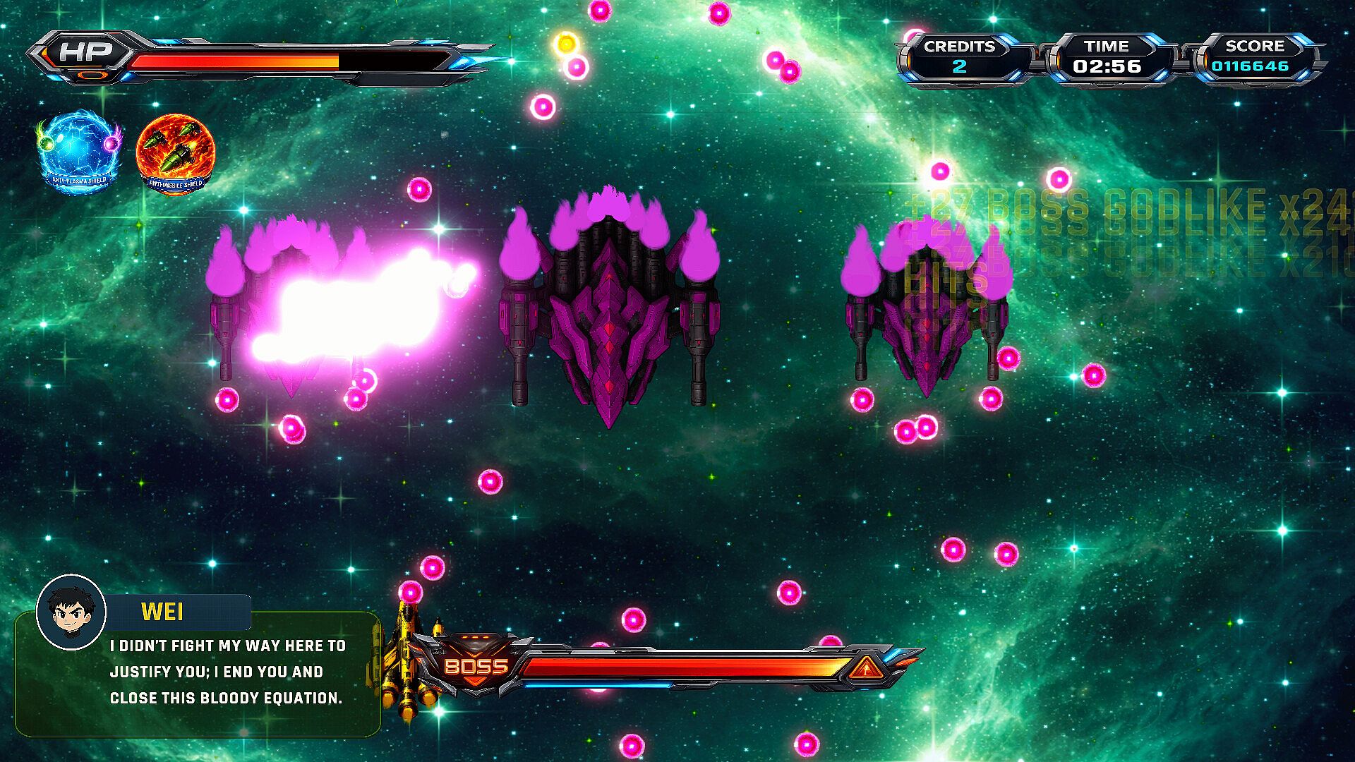 VISUAL NOVEL + SHMUP: a story driven by factions, ideology, and political conflict—built around intense action between scenes.