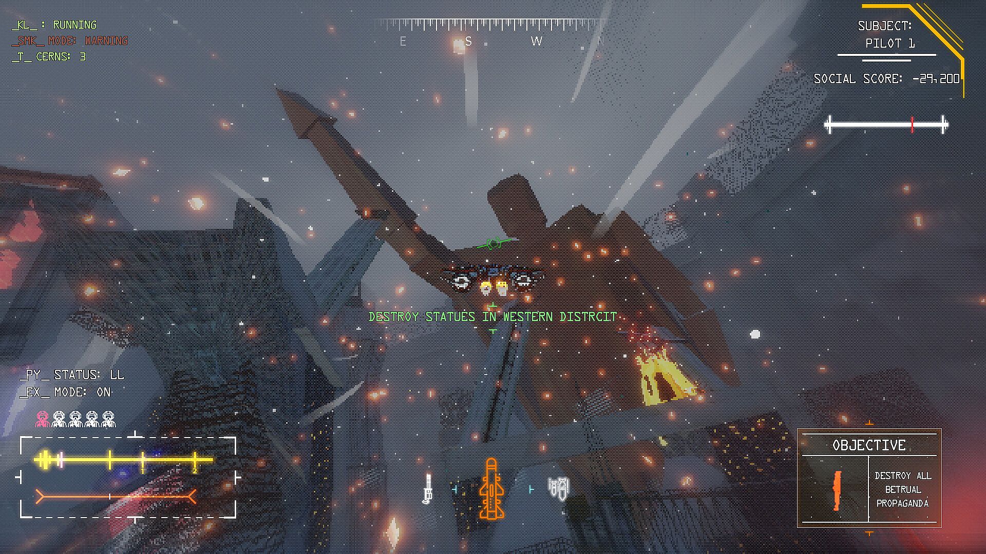 The story begins exactly 80 years after the war. You play as a new police force, displaying the newest jet on a parade of the Victory. However, it seems like the social tension has been rising increasingly fast after the incorporation of the social score in the citizen's life. You will have to do something about the protestors....
