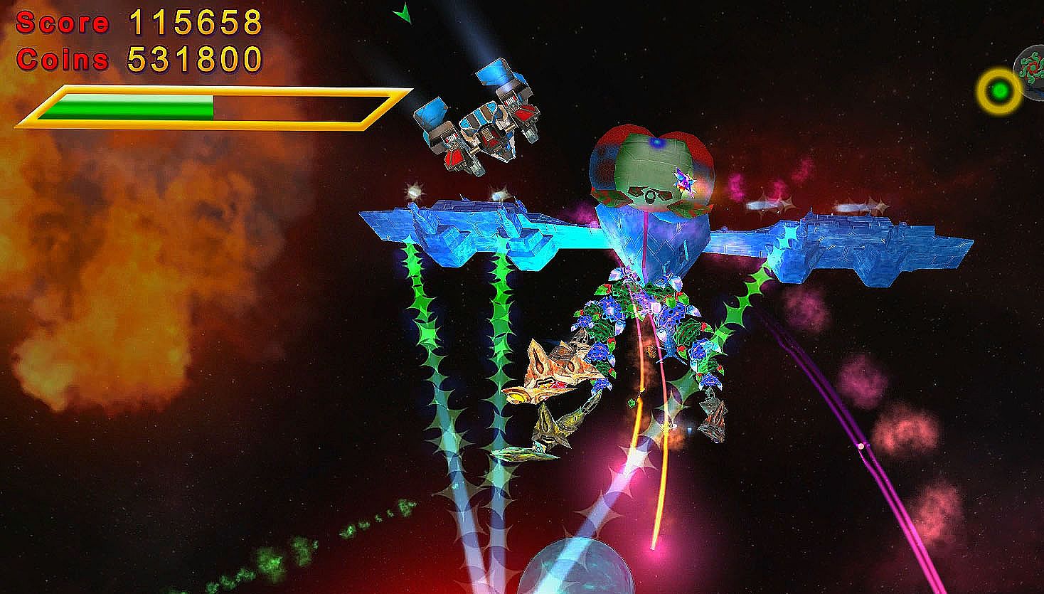 - Collect gems in order to buy new ships and weapons. Use them wisely though!