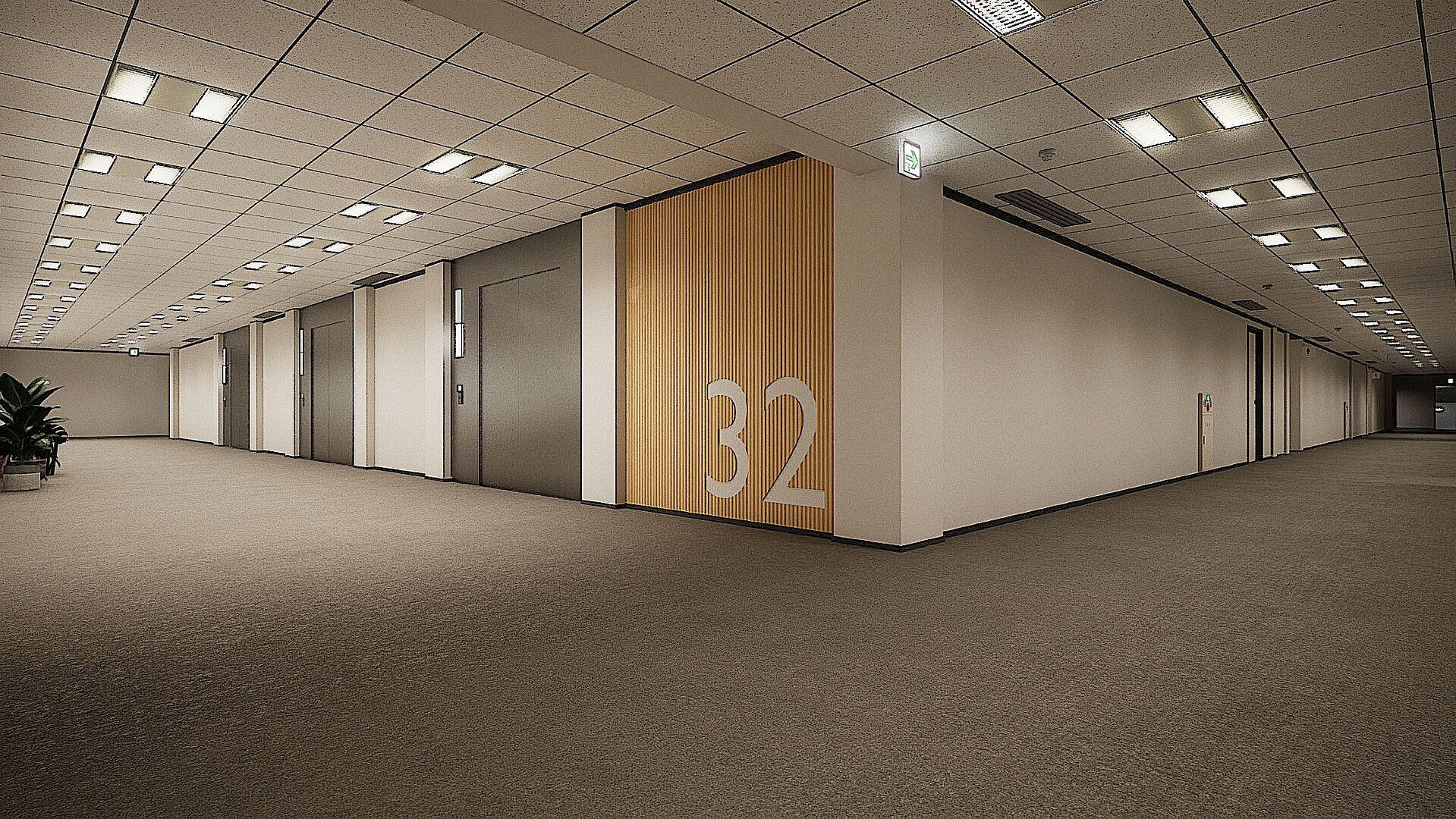 Navigate from floor 32 to the street through immersive, detail-rich spaces