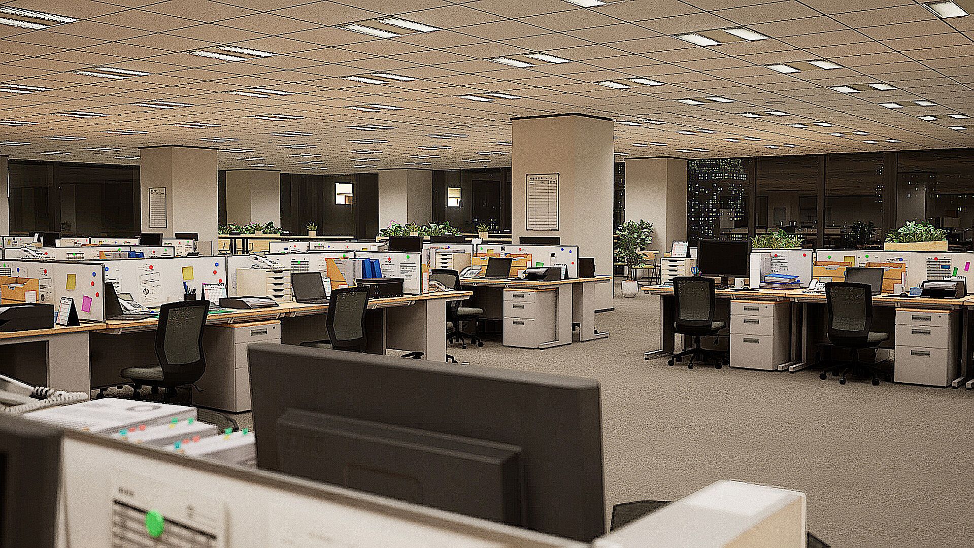 A surreal, hyper-realistic reimagining of Shibuya’s corporate interiors