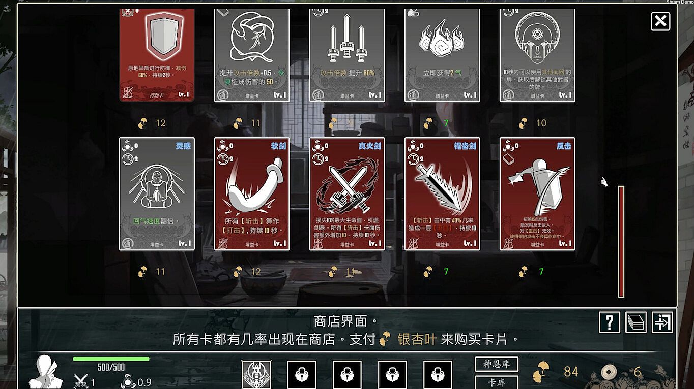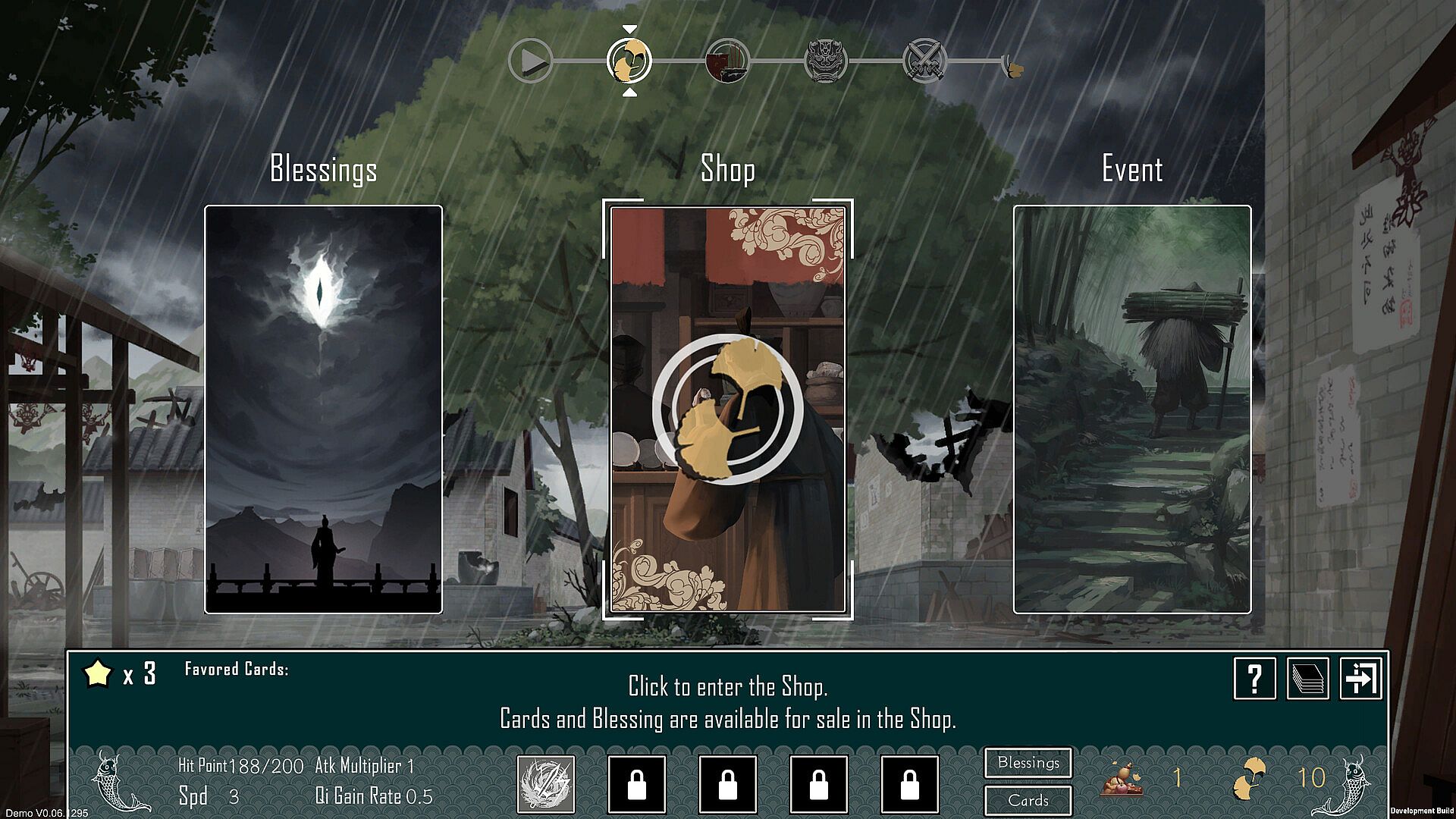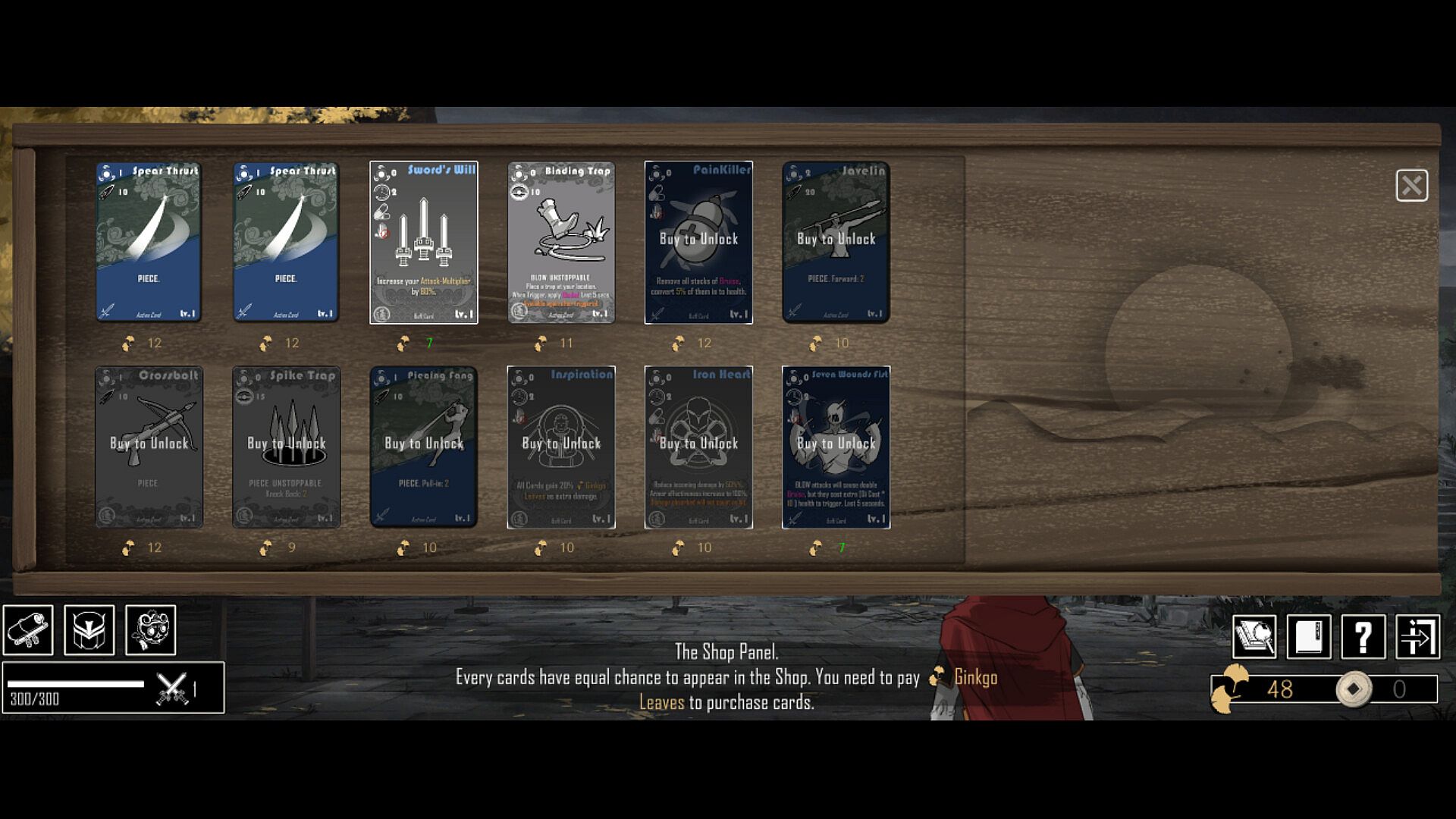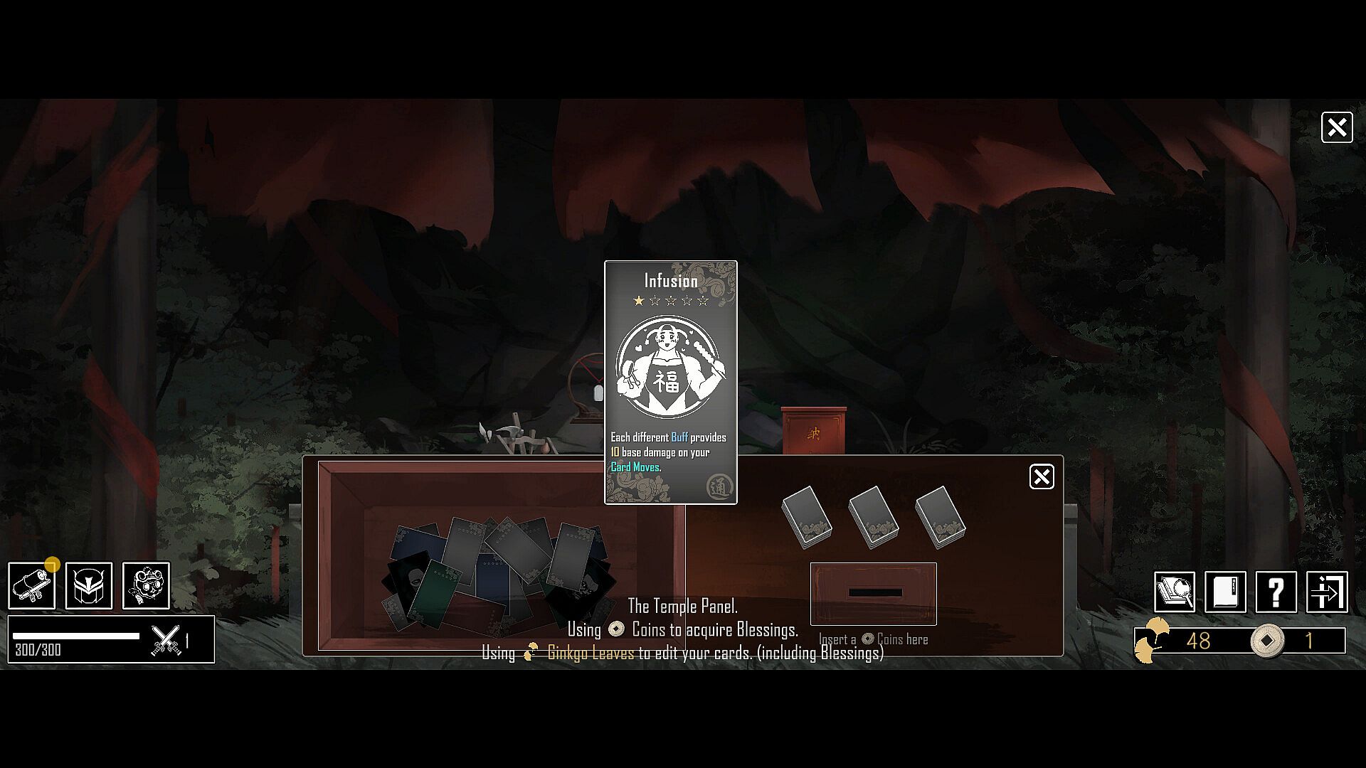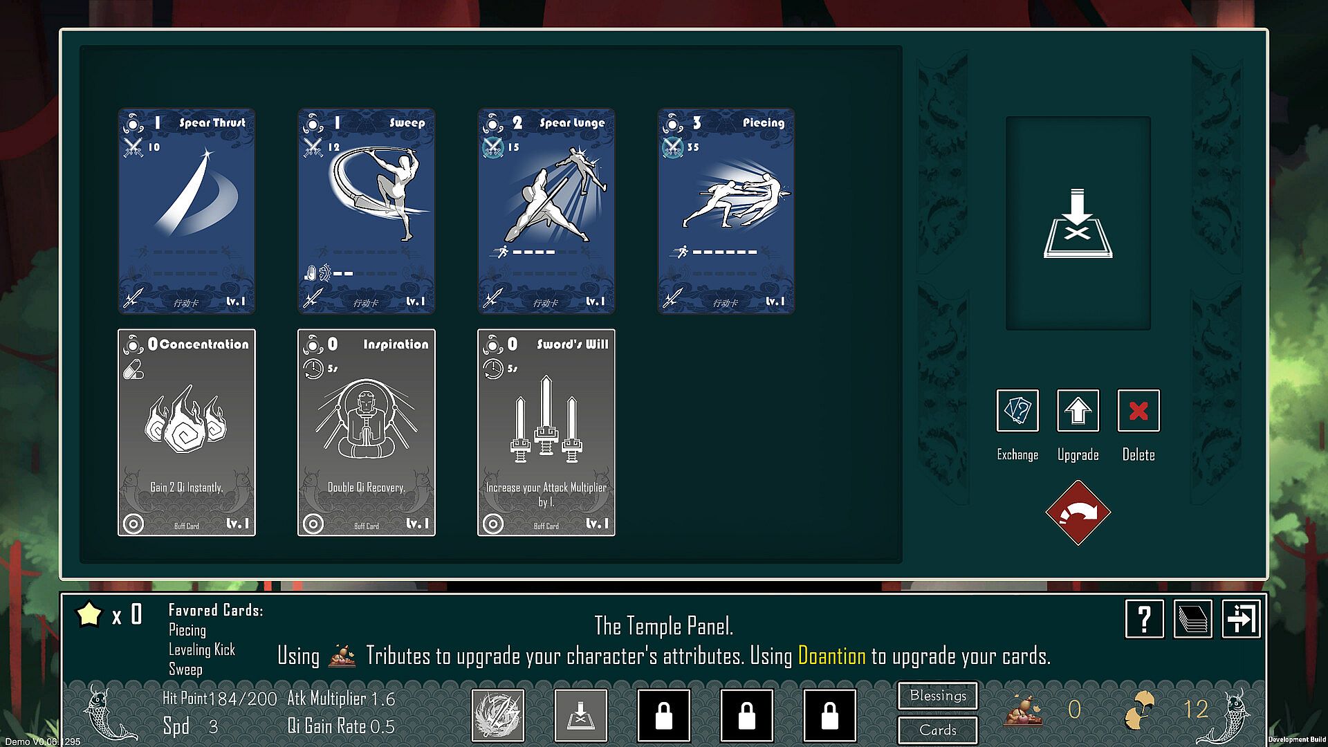 Spend coins in the Temple to upgrade cards, delete unwanted ones, or exchange them for new options. Continuously refine your deck to stay ahead of increasingly challenging foes.