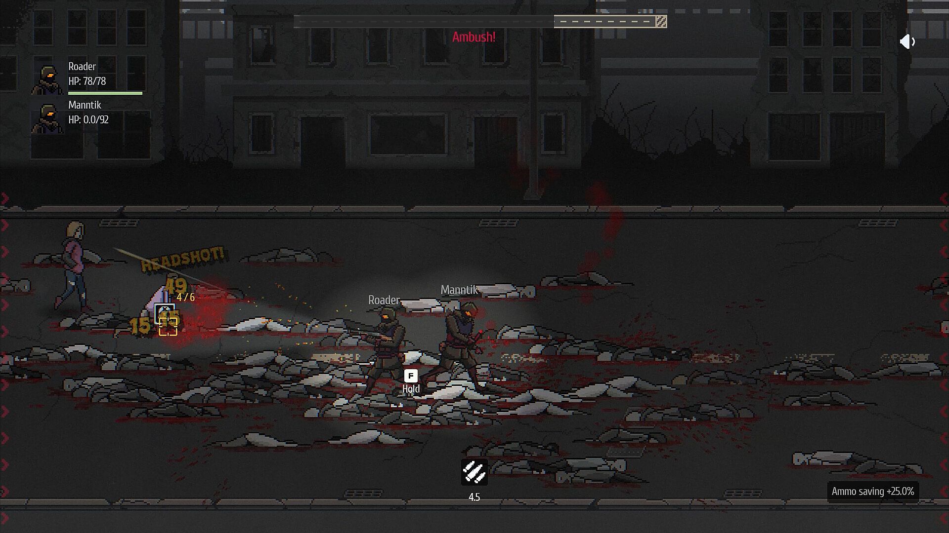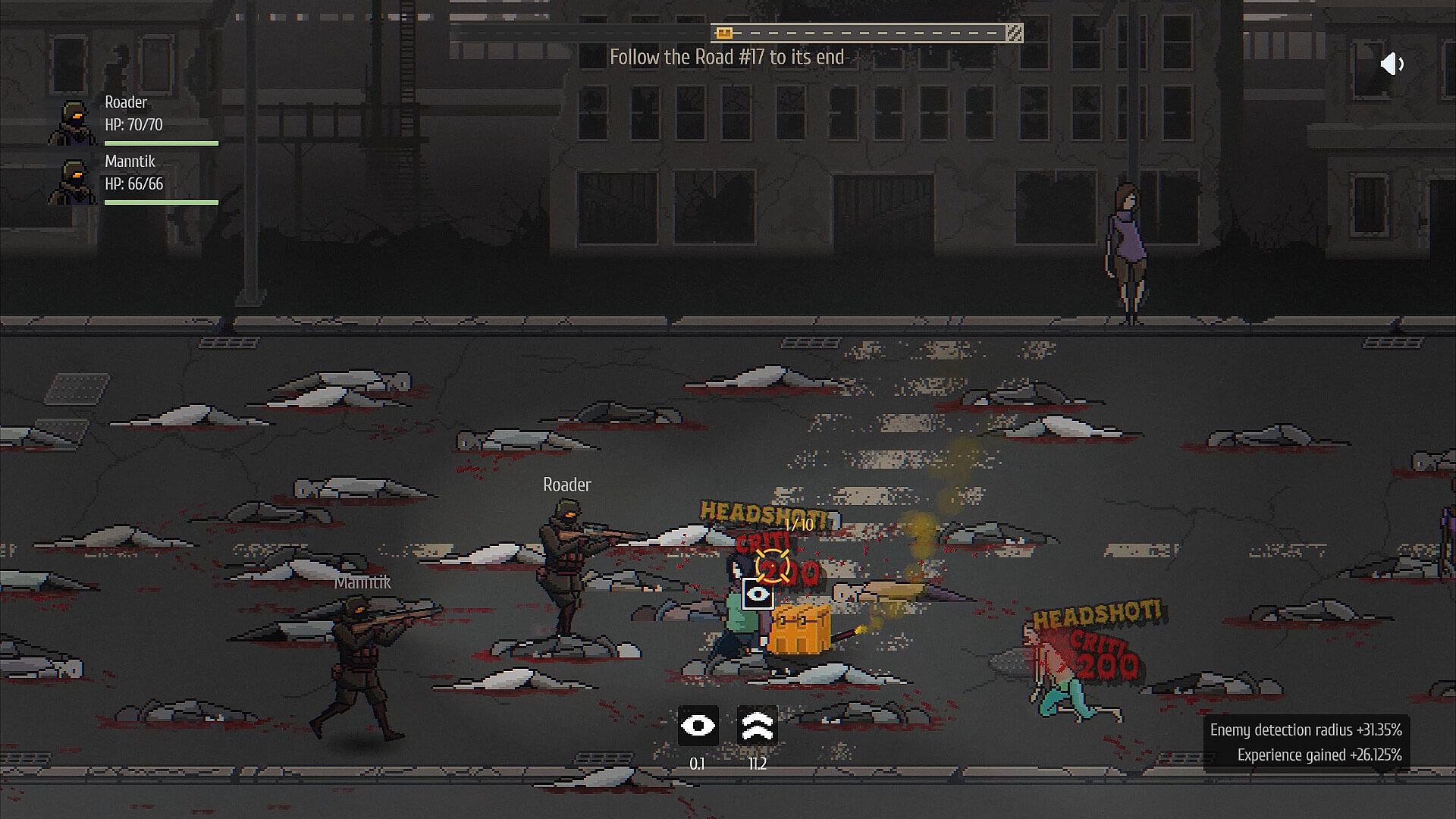 Death on the road will strip you of all resources and equipment, but it leaves all accumulated experience intact. Every surge of adrenaline and every zombie slain turns into XP that stays with your survivor forever. Invest it in your character's stats — these can never be taken away. Each new run begins with a weak weapon, but with a stronger, more experienced character.