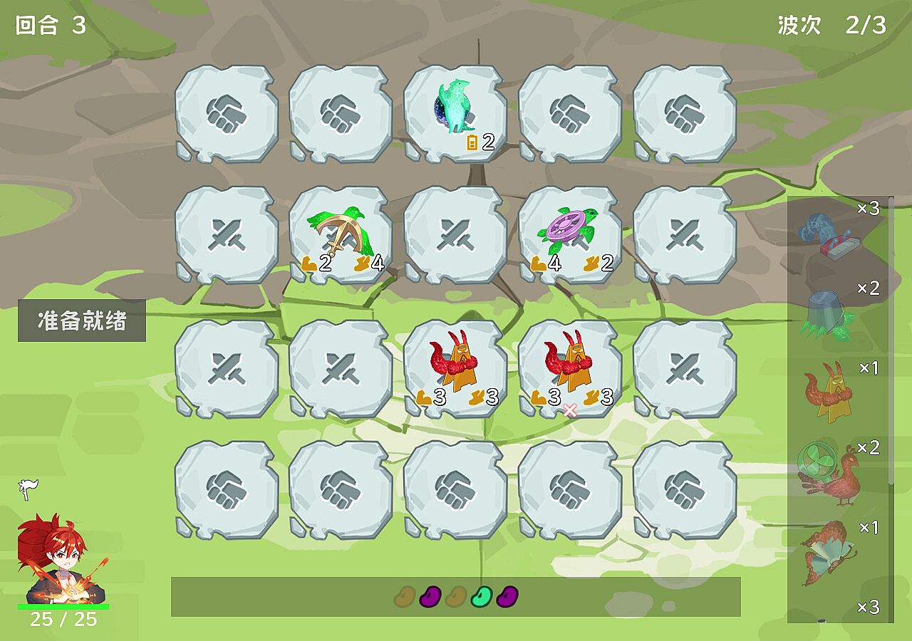 • Limited influence of randomness (unsuccessfully, though). I tried to remove the card draw mechanic and use probability-based resource generation tied to characters in an attempt to reduce the impact of luck on the outcome. However, as things stand, the current resource generation system still makes luck too influential, and I might come up with a better solution for this in the future.