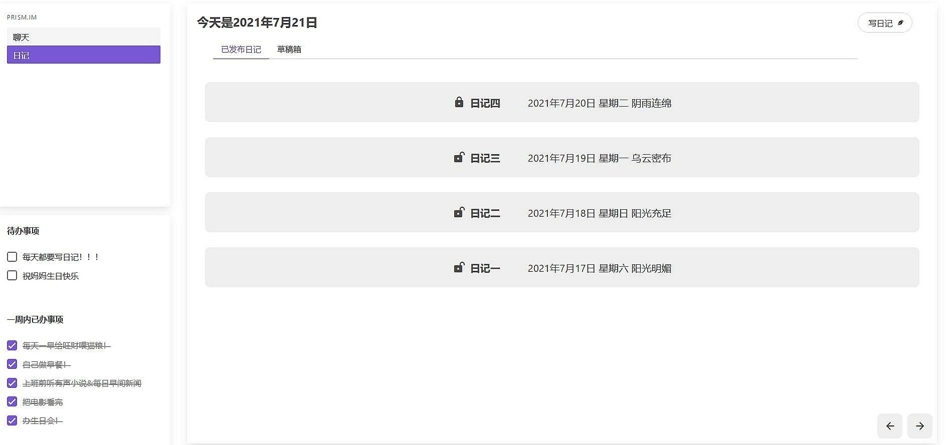 “我”是一个普通人,目前年纪不大,打工人一枚。从小因为各种原因,有用传统纸笔写日记的习惯。直到科技发展、电脑和互联网普及,偶然发现了这款集存储日记、标记日程表、兴趣聊天室及私信聊天等为一体的小众软件,使用起来简约而有质感,便被深深迷住,并成为忠实用户。每天都坚持在上面写日记。深入了解发现,这款软件不仅好用,而且听说它与“棱镜计划”这个地下研究有关,即这款软件是连接平行宇宙的桥梁。我想和另一个自己对话,我想借助他分享的另一个世界在选择上的的分支,指引自己做出更加正确的决定。或者说,我想知道自己生活的另一种可能性。不过可惜,这只是听说的而已,没有事实依据,但我心存敬畏,我相信这种可能。