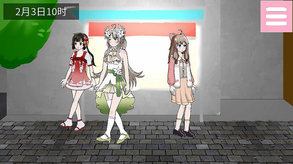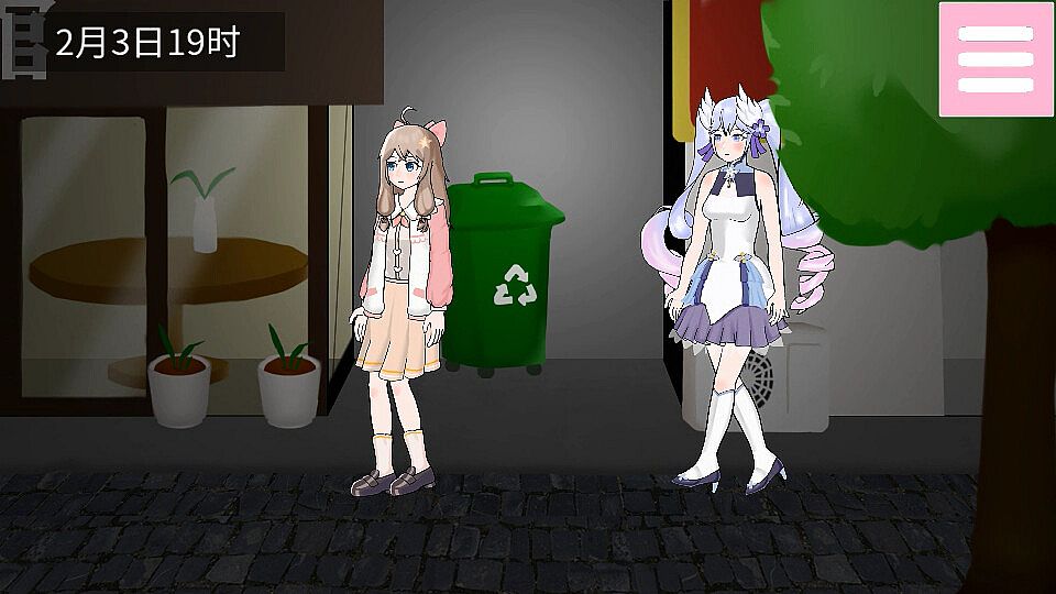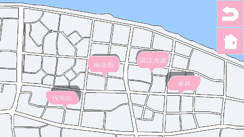 • 在地图上的四个区域自由移动,和路过的行人搭讪