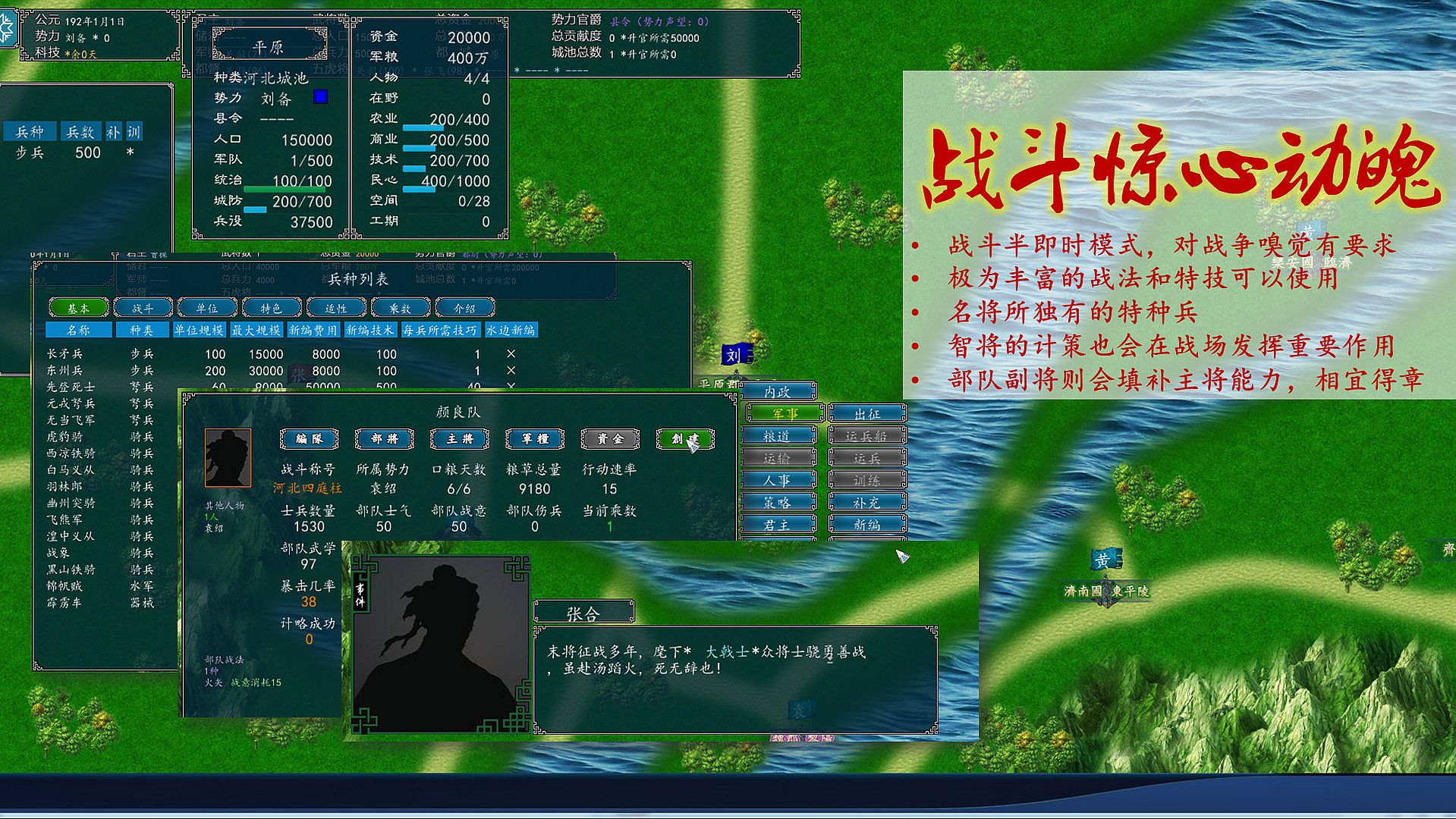 Supermaps are precisely surveyed and mapped according to historical terrain. All terrain, rivers and city pools are distributed with strict respect for historical facts, and their strategic position is very prominent. In the Northern Expedition, Guandu, Jieting, Yinping, the lack of food in Nanman, the difficulty in the Northwest desert, the surrounding mountains of Binzhou, all directions of Jingzhou, and the river-crossing of Yangzhou were governed.