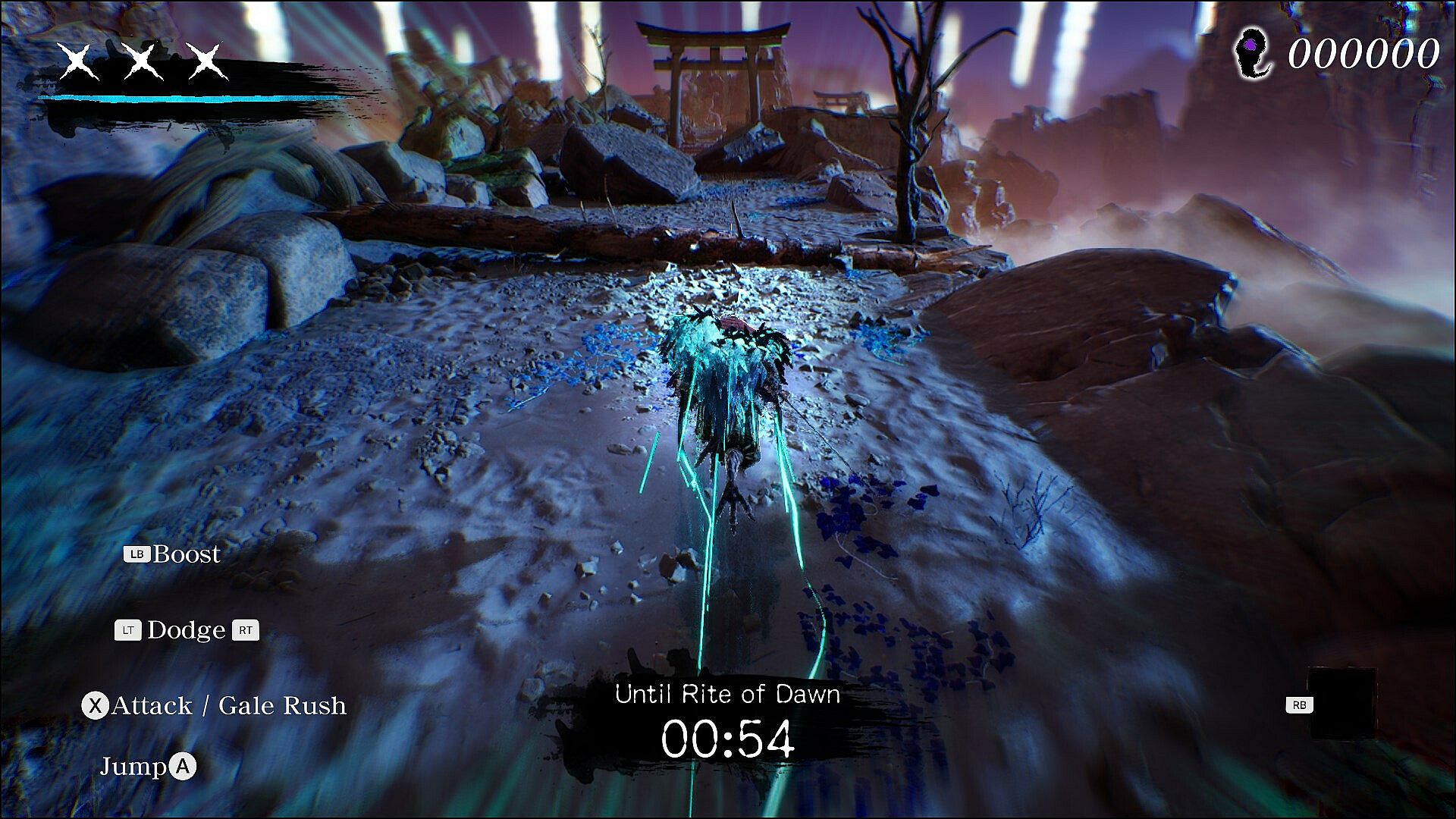Secret art Gale Rush extends the time until sunrise by consuming the souls of enemies with each strike.